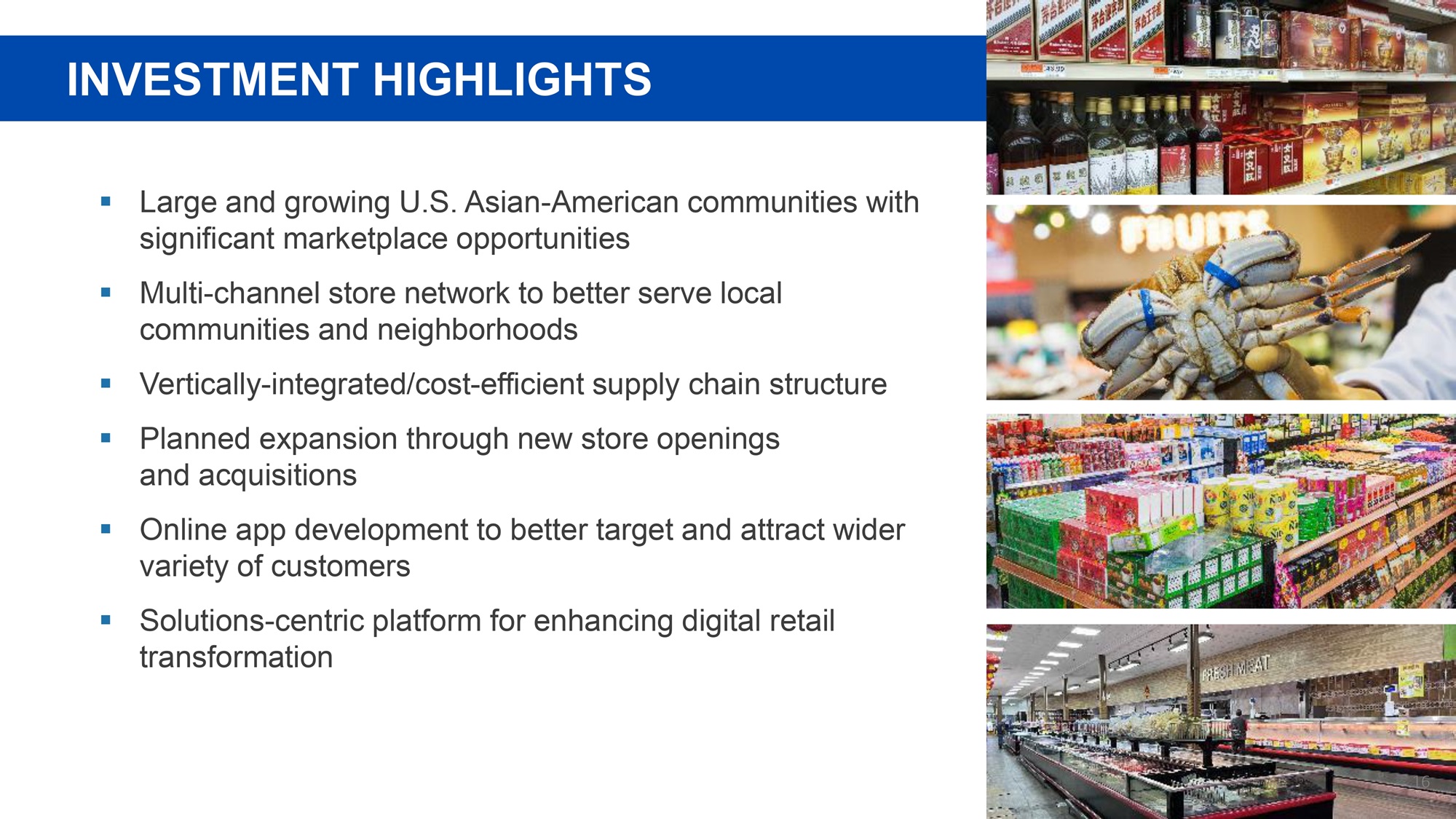 ▪ Large and growing U.S. Asian - American communities with significant marketplace opportunities ▪ Multi - channel store network to better serve local communities and neighborhoods ▪ Vertically - integrated/cost - efficient supply chain structure ▪ Planned expansion through new store openings and acquisitions ▪ Online app development to better target and attract wider variety of customers ▪ Solutions - centric platform for enhancing digital retail transformation INVESTMENT HIGHLIGHTS 16
