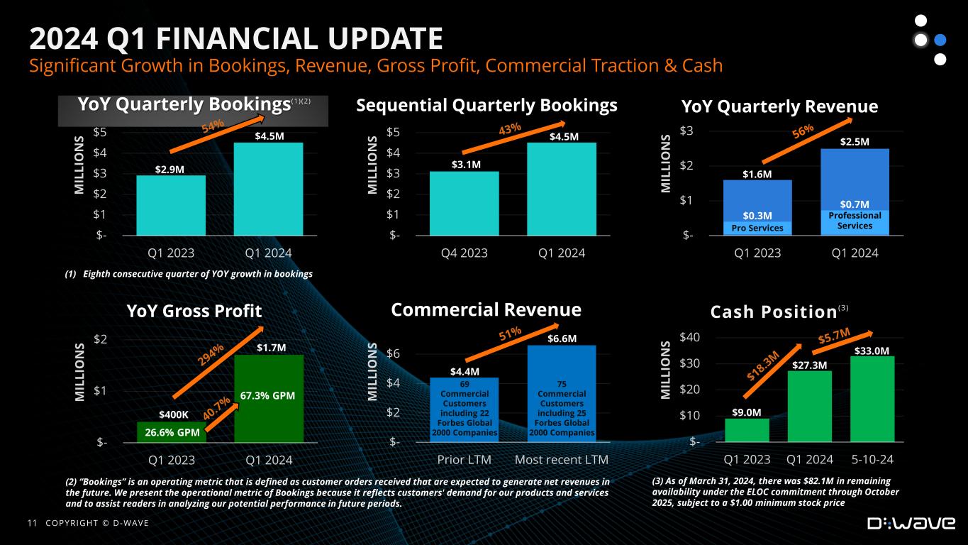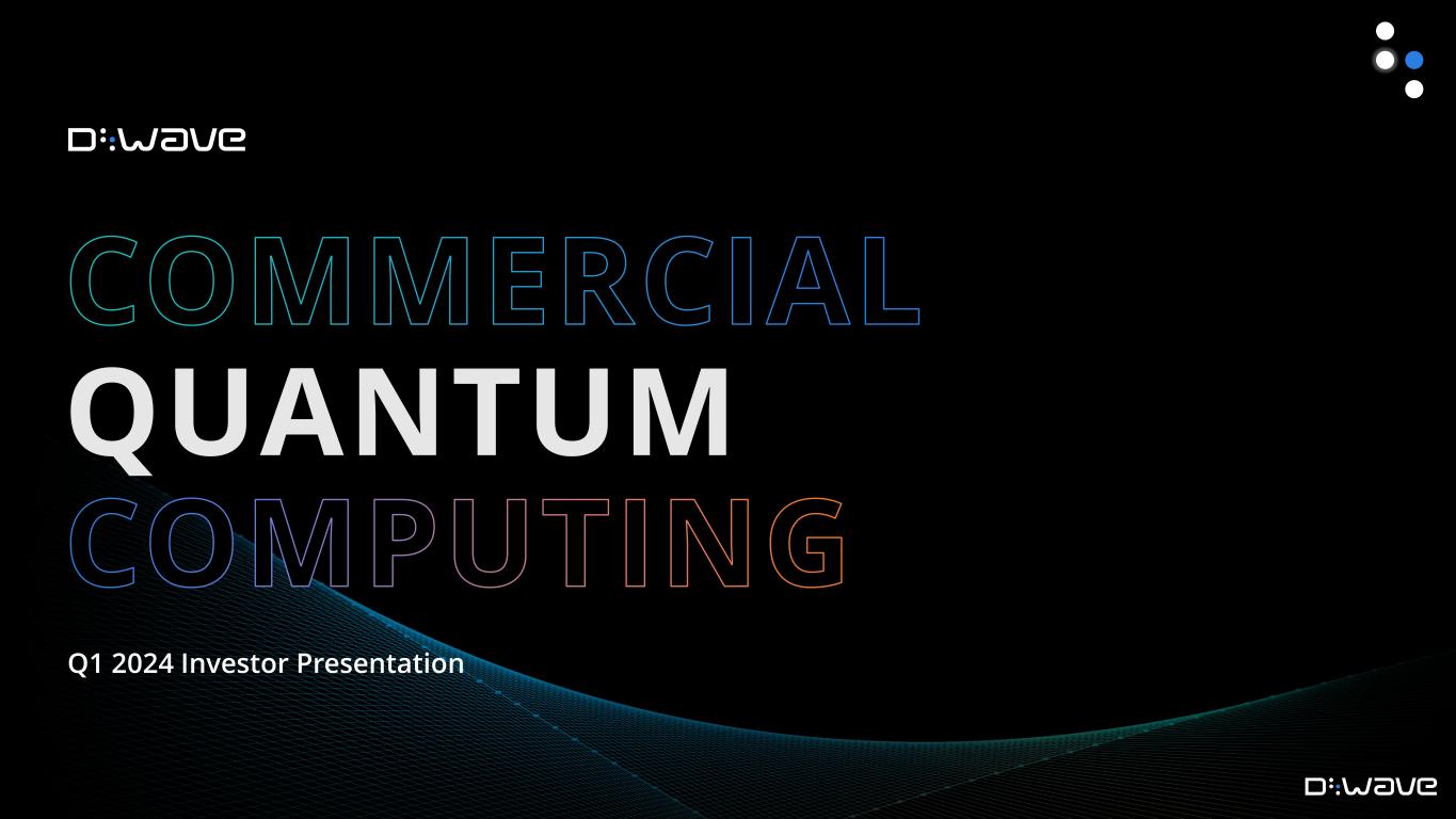 2024 Q1 FINANCIAL UPDATE Significant Growth in Bookings, Revenue, Gross Profit, Commercial Traction & Cash $- $1 $2 $3 $4 $5 Q1 2023 Q1 2024 M IL LI O N S YoY Quarterly (1) $2.9M $4.5M (1) Eighth consecutive quarter of YOY growth in bookings $- $2 $4 $6 Prior LTM Most recent LTM M IL LI O N S 75 Commercial Customers including 25 Forbes Global 2000 Companies 69 Commercial Customers including 22 Forbes Global 2000 Companies $4.4M Commercial Revenue $- $1 $2 $3 Q1 2023 Q1 2024 M IL LI O N S - $1.6M $2.5M Professional Services $0.7M Pro Services $0.3M $- $10 $20 $30 $40 Q1 2023 Q1 2024 5-10-24 M IL LI O N S Cash Position (3) $27.3M $9.0M (3) As of March 31, 2024, there was $82.1M in remaining availability under the ELOC commitment through October 2025, subject to a $1.00 minimum stock price $- $1 $2 $3 $4 $5 Q4 2023 Q1 2024 M IL LI O N S $3.1M $4.5M Sequential Quarterly Bookings $6.6M $33.0M YoY Quarterly Bookings(1) (2) $- $1 $2 Q1 2023 Q1 2024 M IL LI O N S $400K $1.7M YoY Gross Profit (2) “Bookings” is an operating metric that is defined as customer orders received that are expected to generate net revenues in the future. We present the operational metric of Bookings because it reflects customers' demand for our products and services and to assist readers in analyzing our potential performance in future periods. YoY Quarterly Revenue 26.6% GPM 67.3% GPM 11 COPYRIGHT © D-WAVE