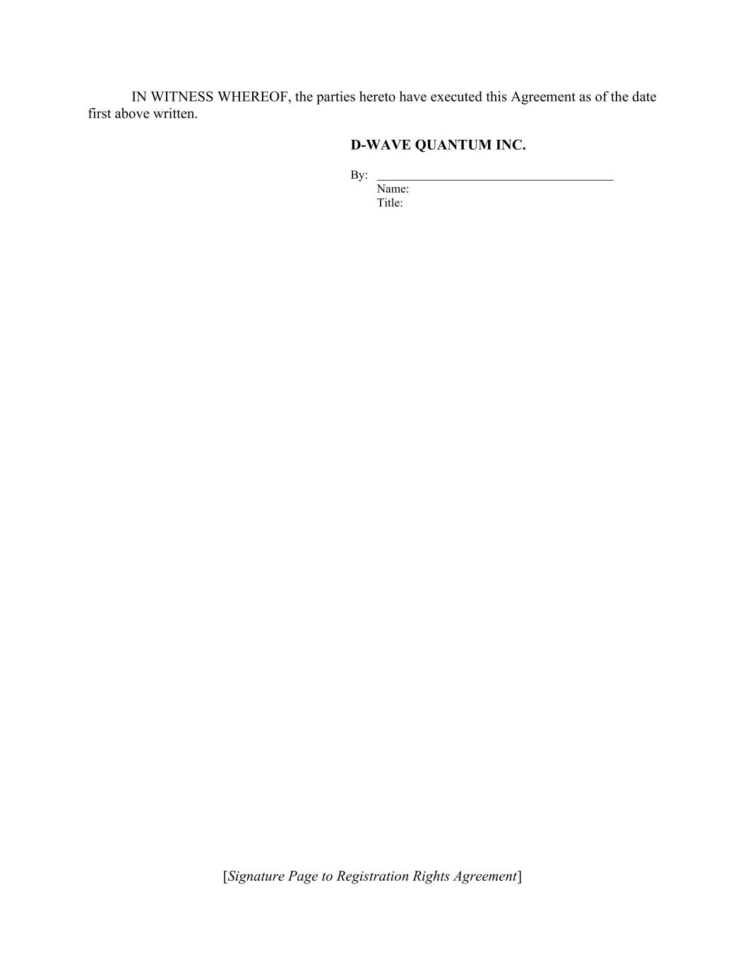 [Signature Page to Registration Rights Agreement] IN WITNESS WHEREOF, the parties hereto have executed this Agreement as of the date first above written. D-WAVE QUANTUM INC. By: Name: Title: