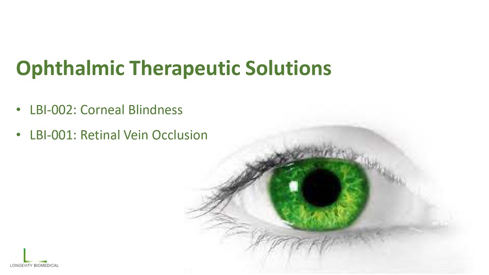 12 Ophthalmic Therapeutic Solutions • LBI - 002: Corneal Blindness • LBI - 001: Retinal Vein Occlusion