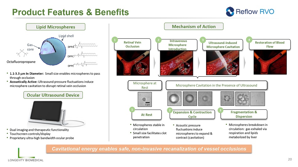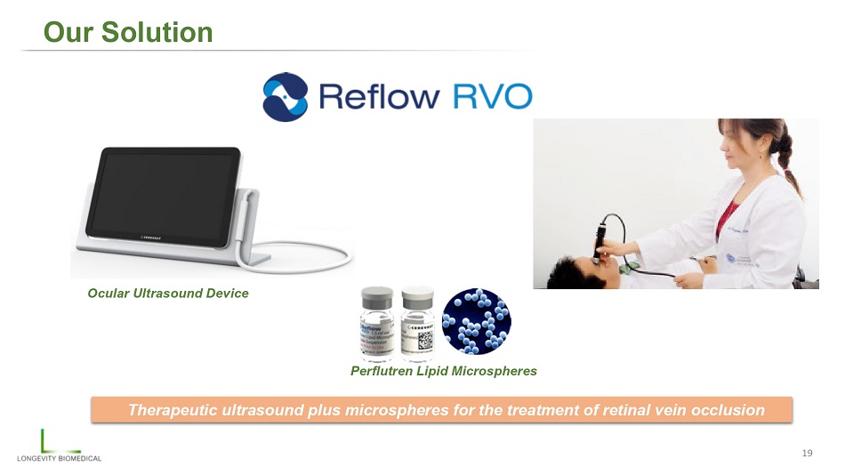 Ocular Ultrasound Device Perflutren Lipid Microspheres Therapeutic ultrasound plus microspheres for the treatment of retinal vein occlusion Our Solution 19