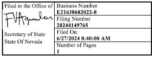 EX-3.1 2 ea020855501ex3-1_asset.htm CERTIFICATE OF CHANGE OF ASSET ENTITIES INC. FILED WITH THE SECRETARY OF STATE OF THE STATE OF NEVADA ON JUNE 27, 2024