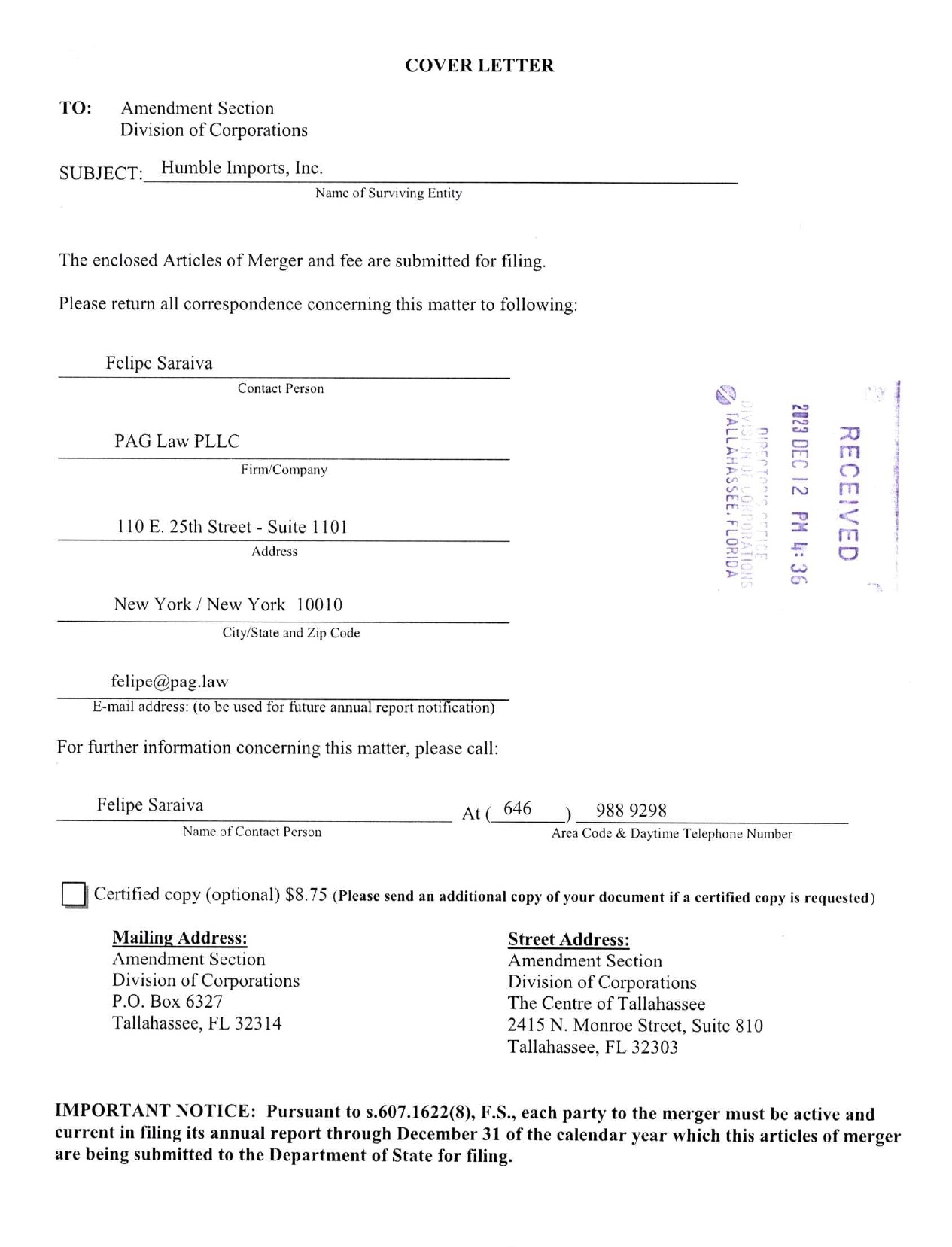 EX-2.3 2 ea190200ex2-3_ecdauto.htm CERTIFICATE OF MERGER, DATED DECEMBER 12, 2023