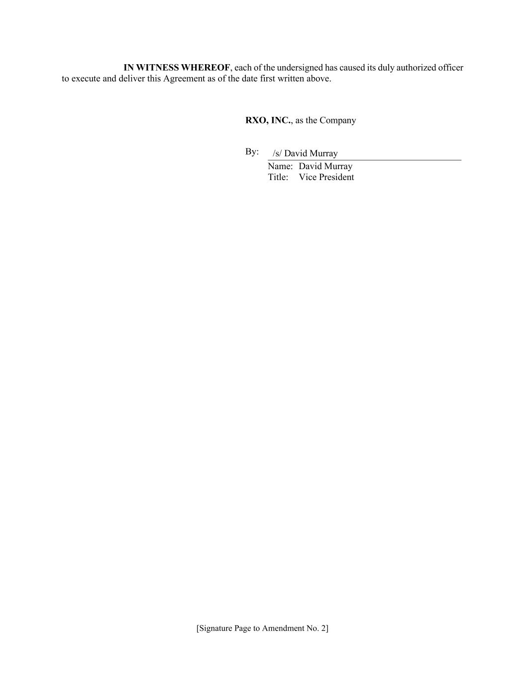 [Signature Page to Amendment No. 2] IN WITNESS WHEREOF, each of the undersigned has caused its duly authorized officer to execute and deliver this Agreement as of the date first written above. RXO, INC., as the Company By: /s/ David Murray Name: David Murray Title: Vice President