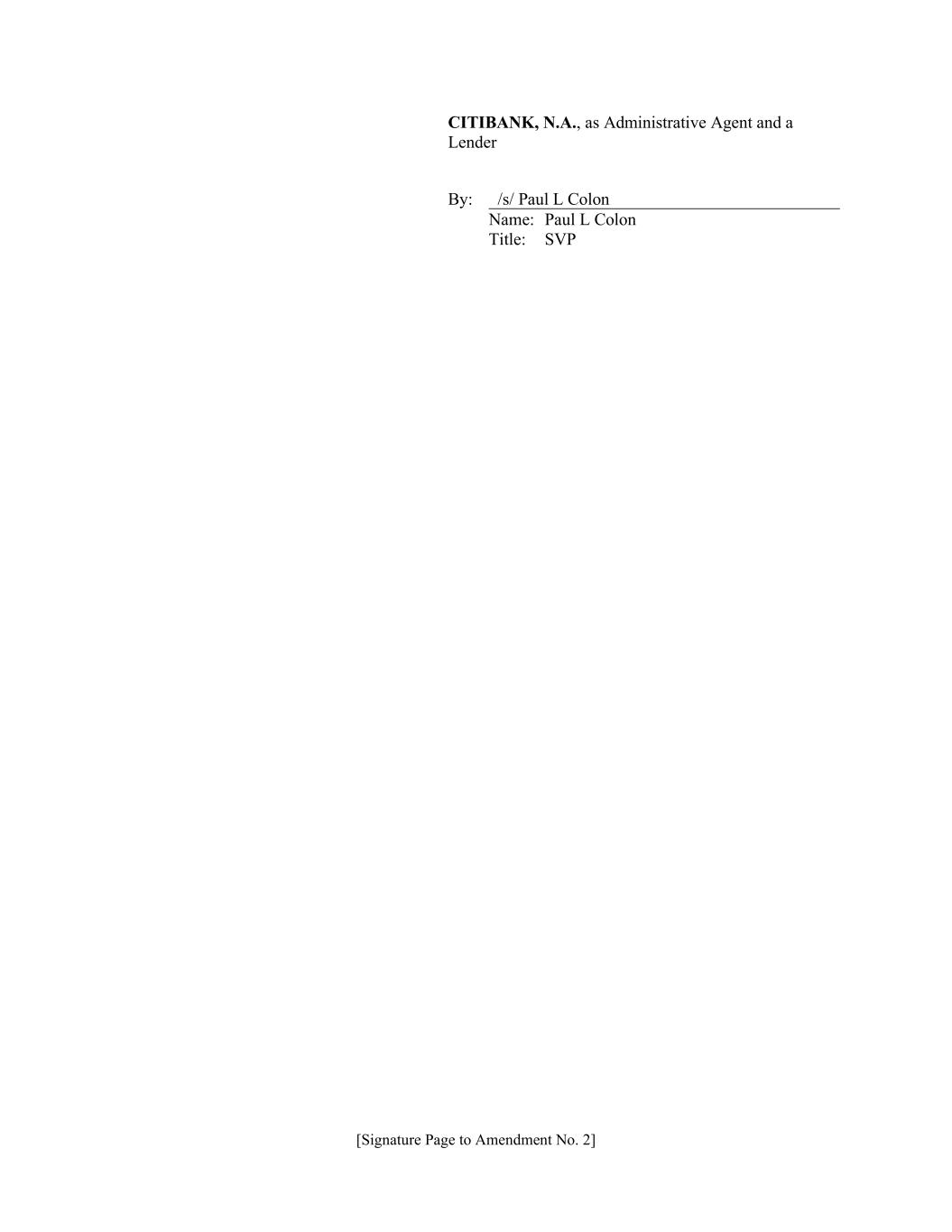 [Signature Page to Amendment No. 2] CITIBANK, N.A., as Administrative Agent and a Lender By: /s/ Paul L Colon Name: Paul L Colon Title: SVP