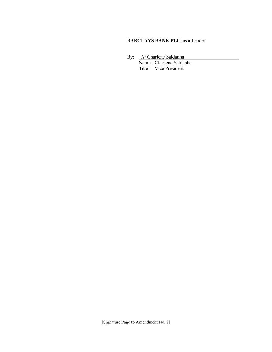 [Signature Page to Amendment No. 2] BARCLAYS BANK PLC, as a Lender By: /s/ Charlene Saldanha Name: Charlene Saldanha Title: Vice President