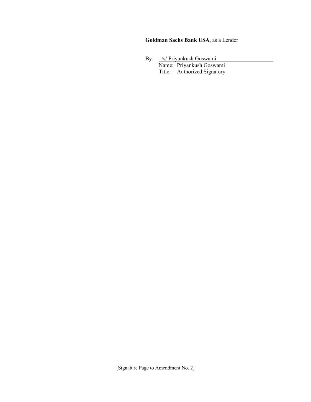 [Signature Page to Amendment No. 2] Goldman Sachs Bank USA, as a Lender By: /s/ Priyankush Goswami Name: Priyankush Goswami Title: Authorized Signatory