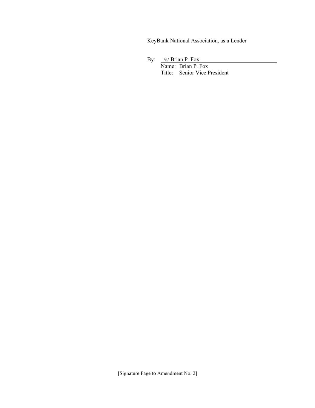 [Signature Page to Amendment No. 2] KeyBank National Association, as a Lender By: /s/ Brian P. Fox Name: Brian P. Fox Title: Senior Vice President