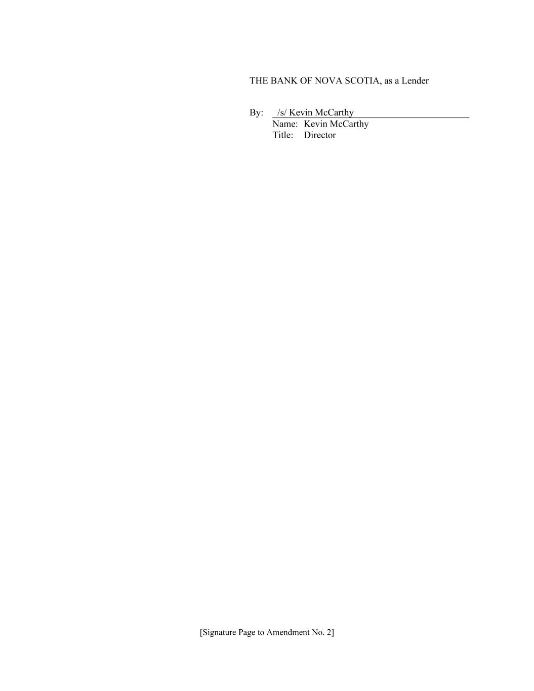 [Signature Page to Amendment No. 2] THE BANK OF NOVA SCOTIA, as a Lender By: /s/ Kevin McCarthy Name: Kevin McCarthy Title: Director