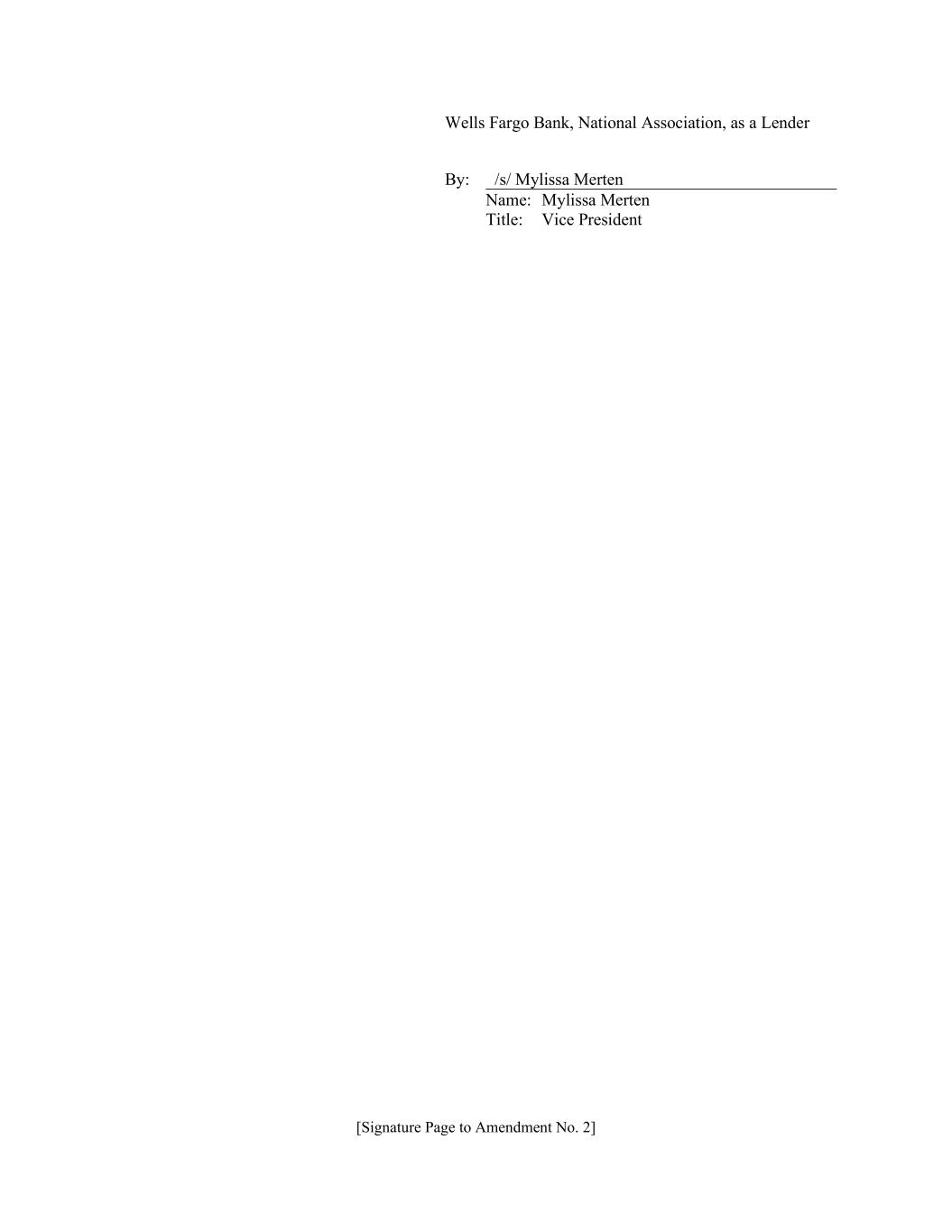 [Signature Page to Amendment No. 2] Wells Fargo Bank, National Association, as a Lender By: /s/ Mylissa Merten Name: Mylissa Merten Title: Vice President