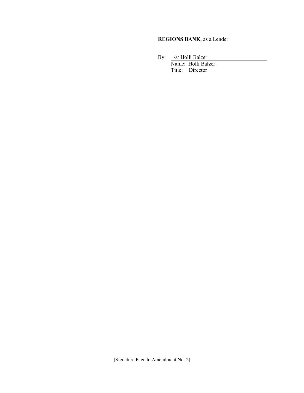 [Signature Page to Amendment No. 2] REGIONS BANK, as a Lender By: /s/ Holli Balzer Name: Holli Balzer Title: Director