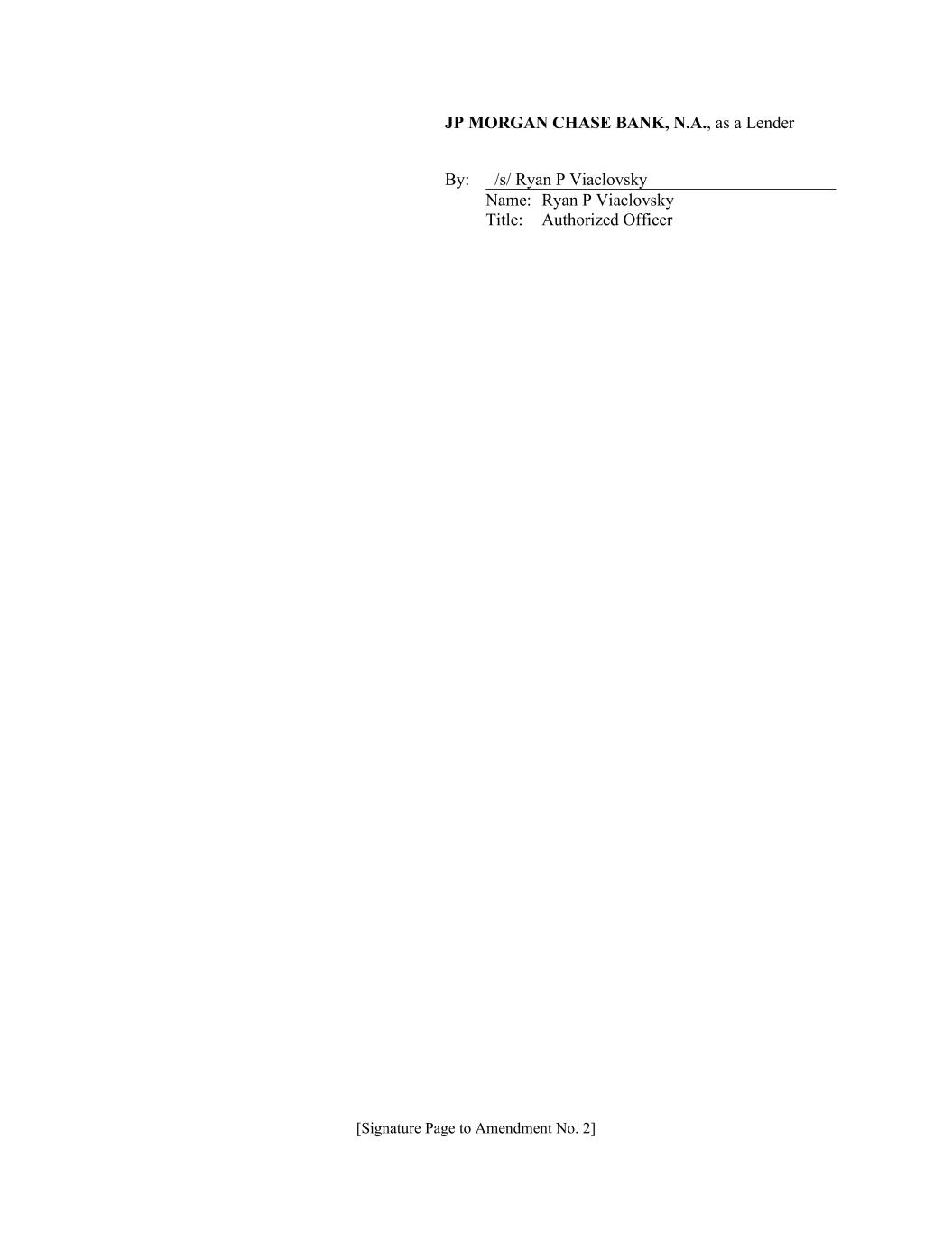 [Signature Page to Amendment No. 2] JP MORGAN CHASE BANK, N.A., as a Lender By: /s/ Ryan P Viaclovsky Name: Ryan P Viaclovsky Title: Authorized Officer