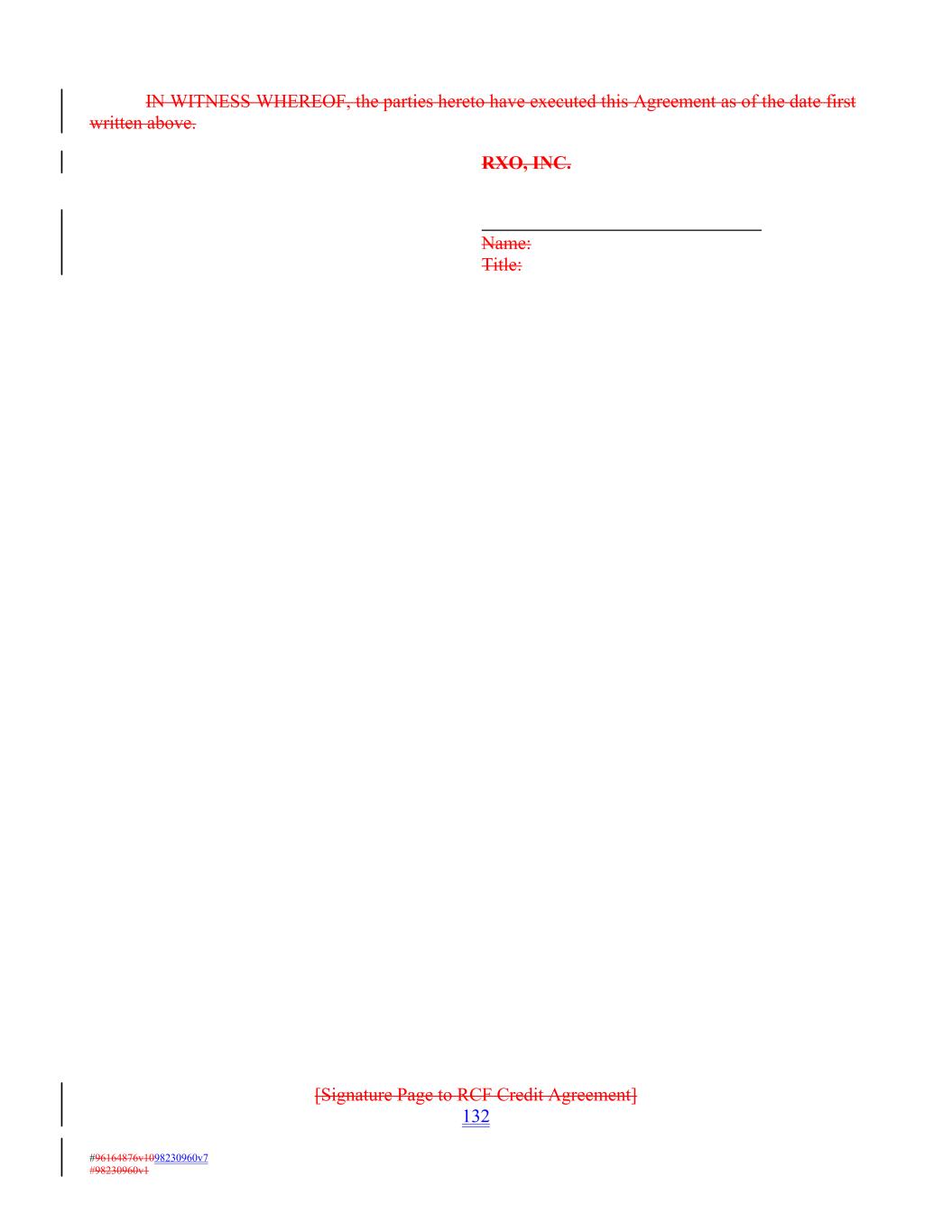 IN WITNESS WHEREOF, the parties hereto have executed this Agreement as of the date first written above. RXO, INC. Name: Title: [Signature Page to RCF Credit Agreement] 132 #96164876v1098230960v7 #98230960v1