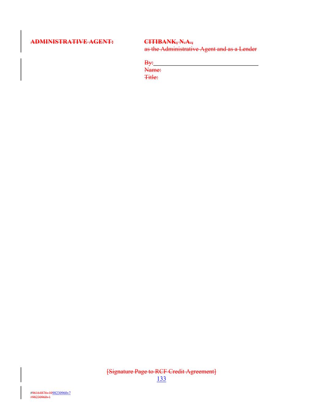 ADMINISTRATIVE AGENT: CITIBANK, N.A., as the Administrative Agent and as a Lender By: Name: Title: [Signature Page to RCF Credit Agreement] 133 #96164876v1098230960v7 #98230960v1