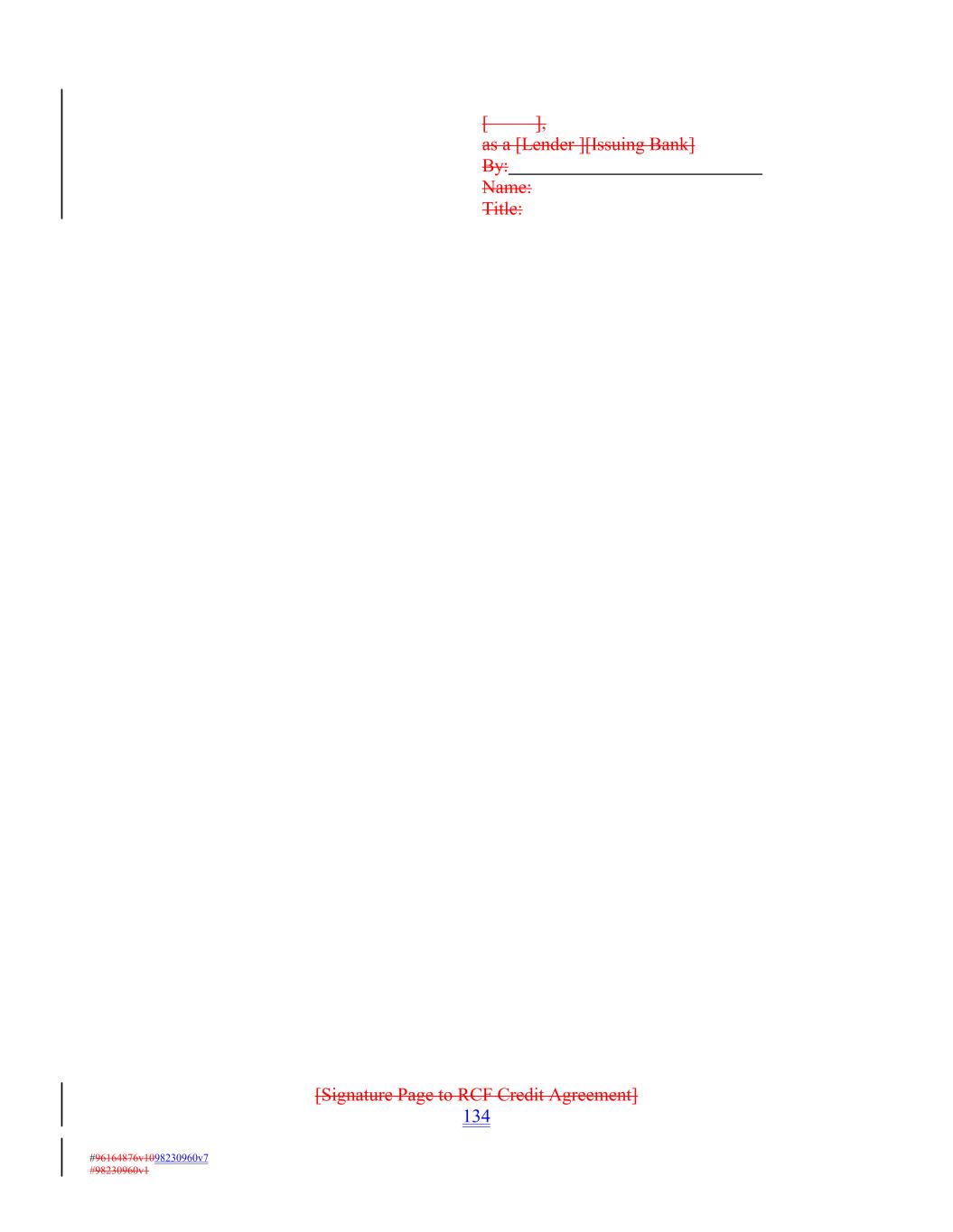 [ ], as a [Lender ][Issuing Bank] By: Name: Title: [Signature Page to RCF Credit Agreement] 134 #96164876v1098230960v7 #98230960v1