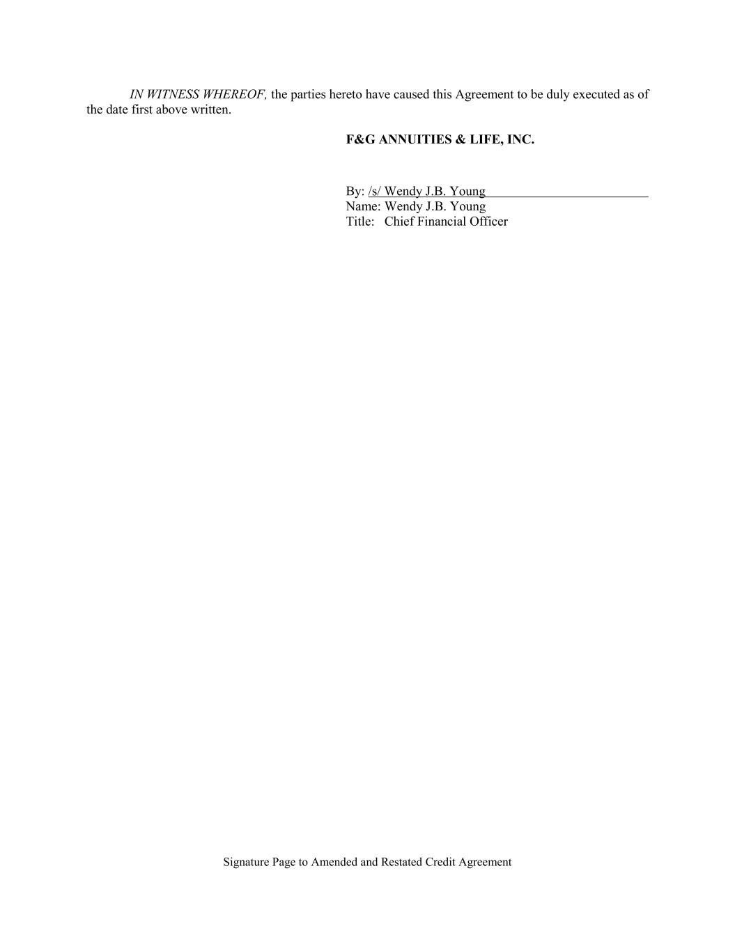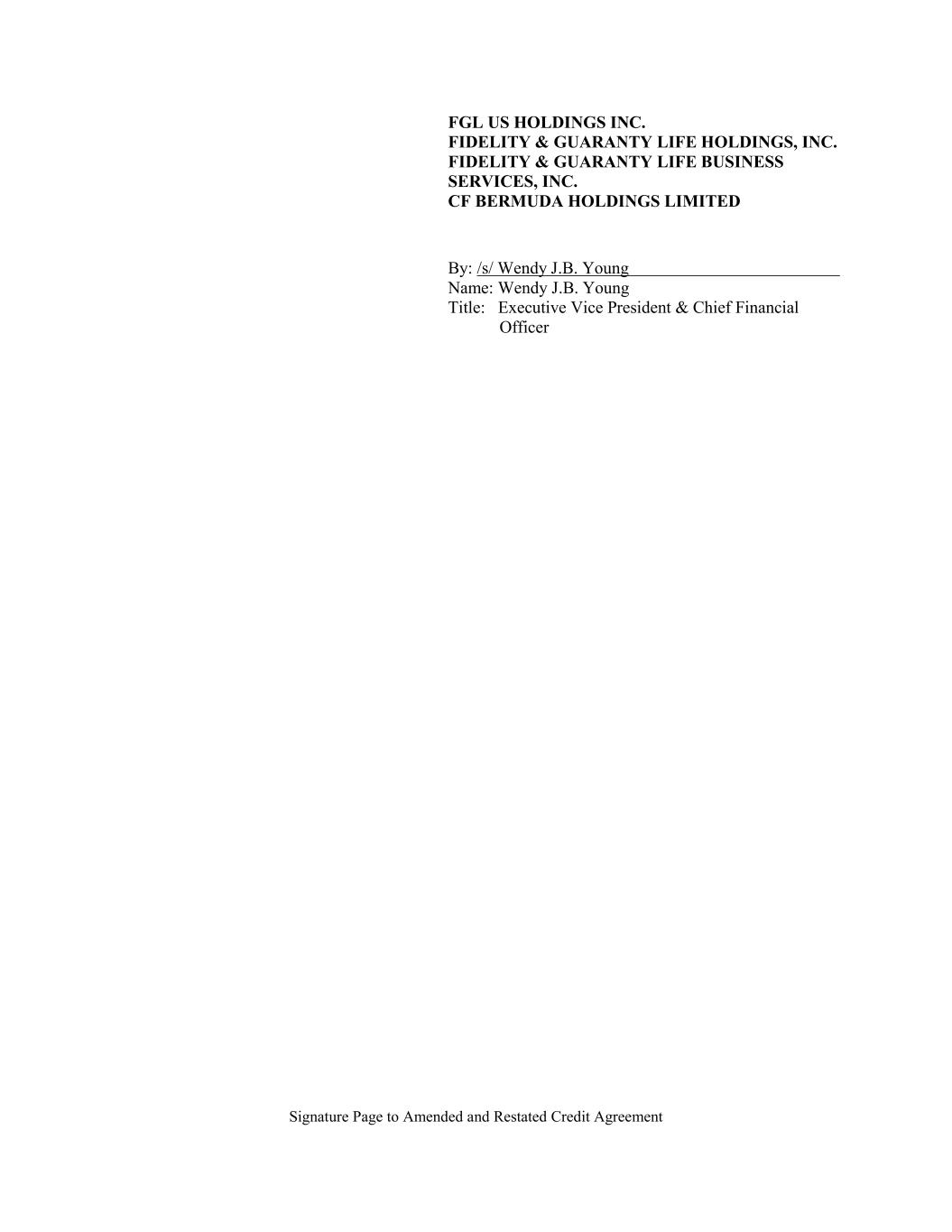 Signature Page to Amended and Restated Credit Agreement FGL US HOLDINGS INC. FIDELITY & GUARANTY LIFE HOLDINGS, INC. FIDELITY & GUARANTY LIFE BUSINESS SERVICES, INC. CF BERMUDA HOLDINGS LIMITED By: /s/ Wendy J.B. Young Name: Wendy J.B. Young Title: Executive Vice President & Chief Financial Officer