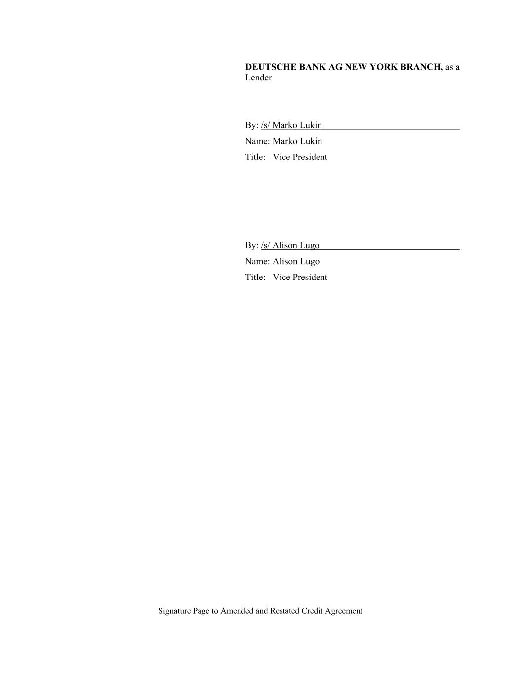 Signature Page to Amended and Restated Credit Agreement DEUTSCHE BANK AG NEW YORK BRANCH, as a Lender By: /s/ Marko Lukin Name: Marko Lukin Title: Vice President By: /s/ Alison Lugo Name: Alison Lugo Title: Vice President