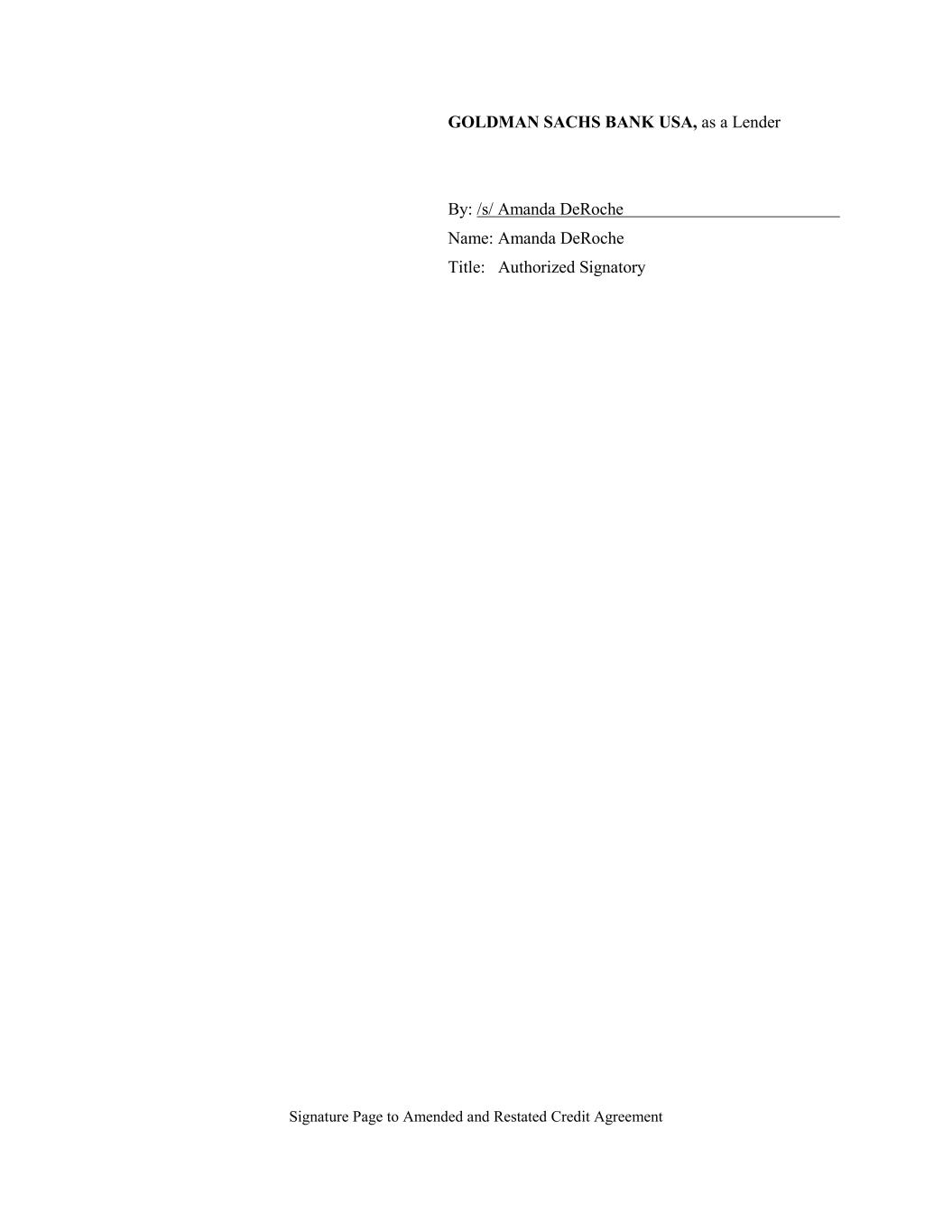 Signature Page to Amended and Restated Credit Agreement GOLDMAN SACHS BANK USA, as a Lender By: /s/ Amanda DeRoche Name: Amanda DeRoche Title: Authorized Signatory