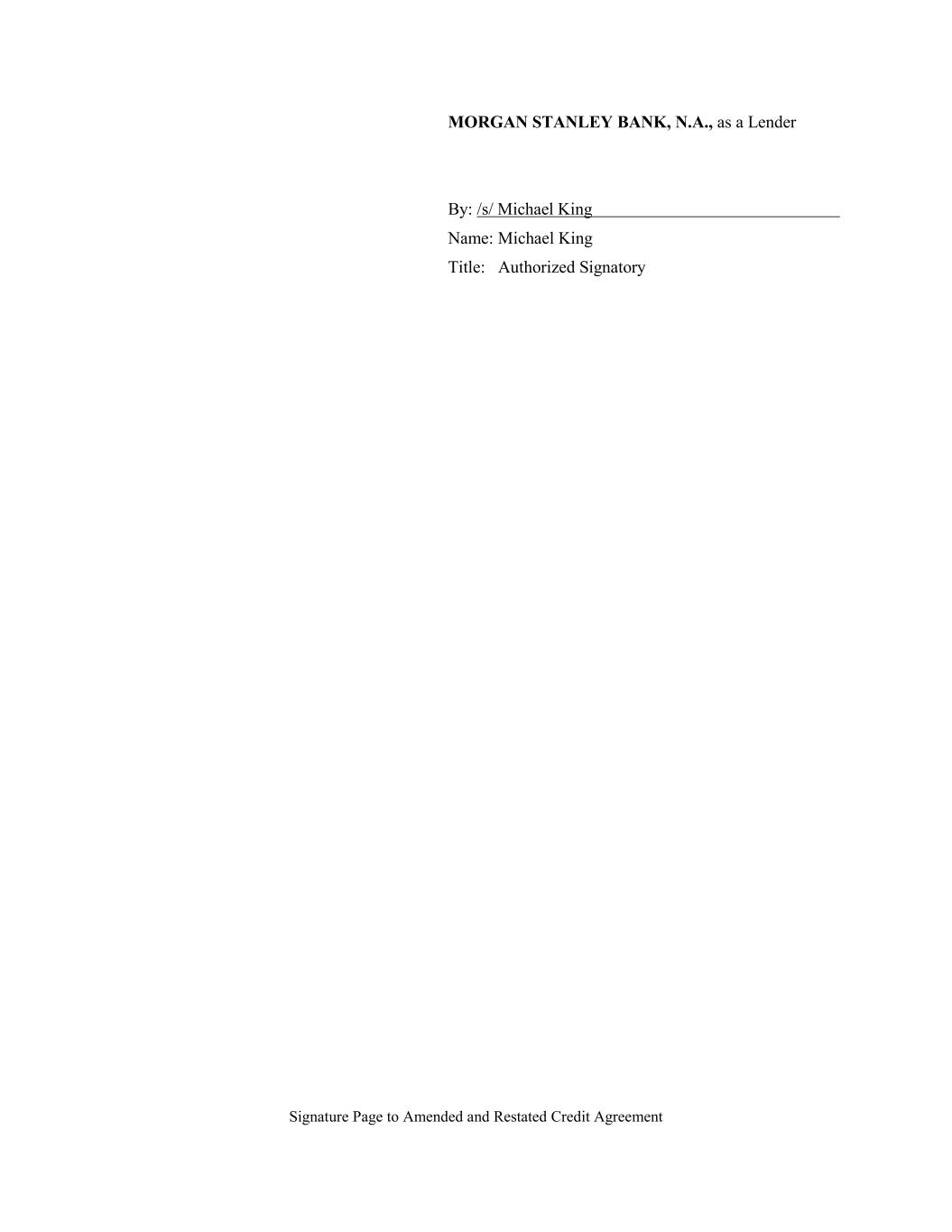 Signature Page to Amended and Restated Credit Agreement MORGAN STANLEY BANK, N.A., as a Lender By: /s/ Michael King Name: Michael King Title: Authorized Signatory
