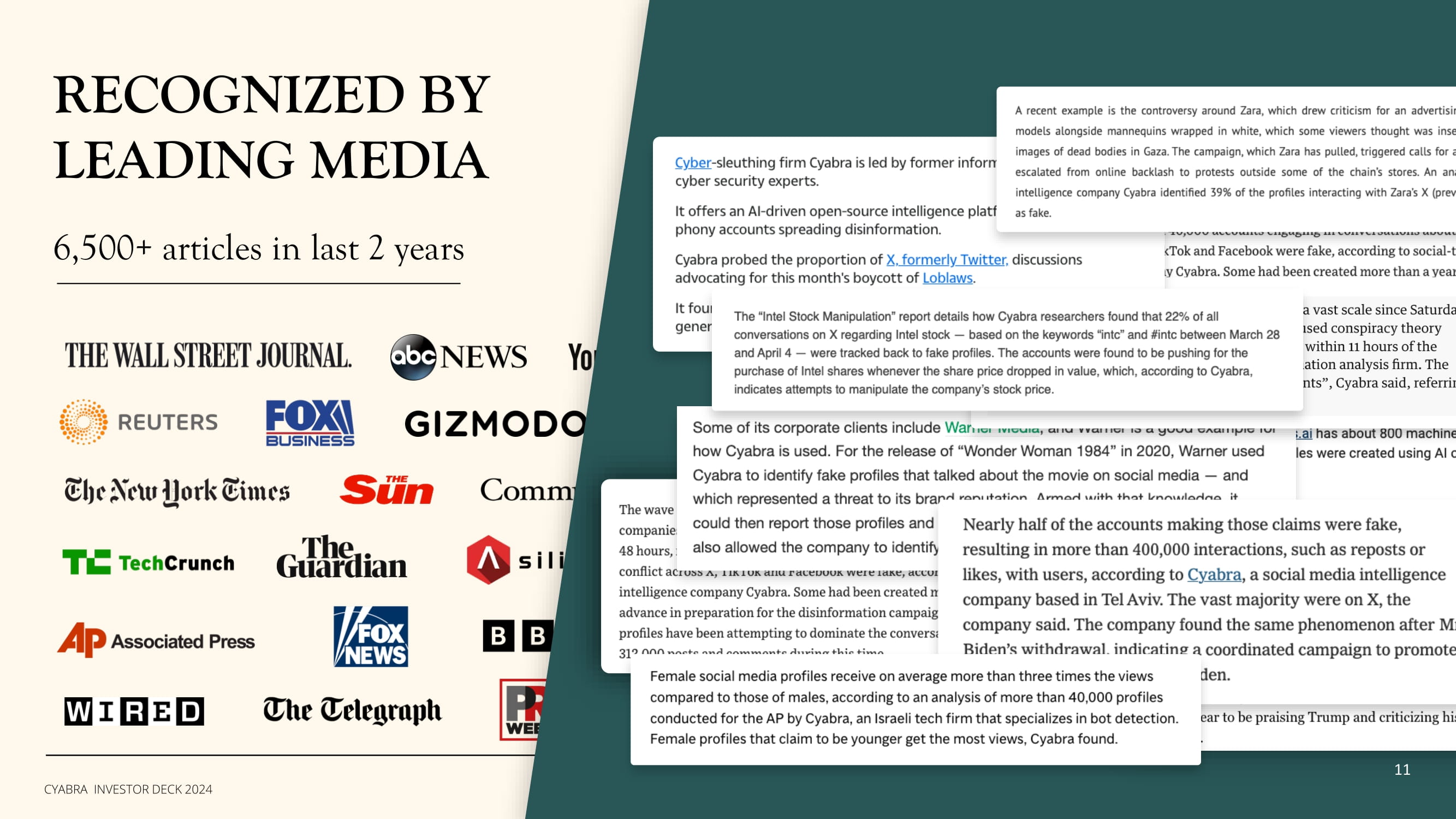RECOGNIZED BY LEADING MEDIA 6,500+ articles in last 2 years 11 PRIVATE & CONFIDENTIAL CYABRA INVESTOR DECK 2024