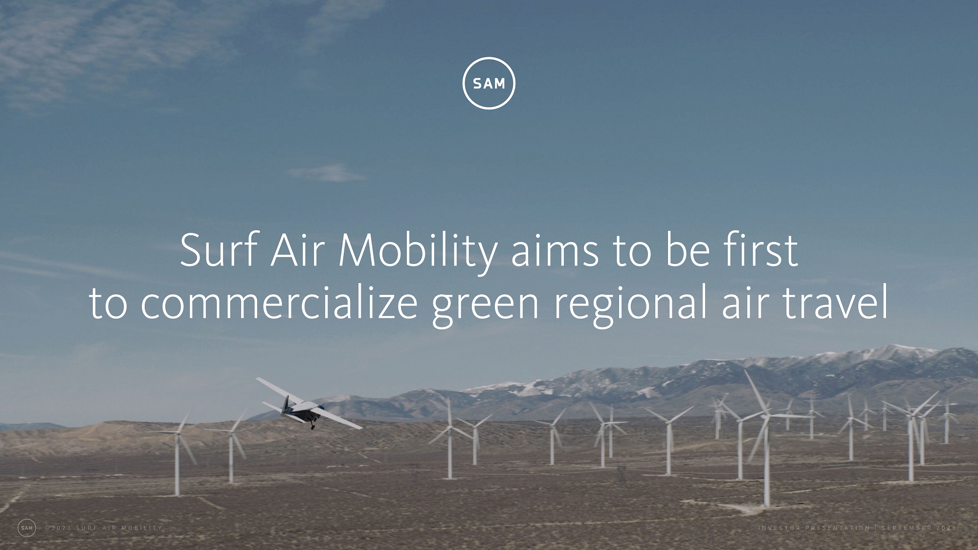 © 2 0 2 3 S U R F A I R M O B I L I T Y Su r f A ir Mobility aims to be first to commercialize green regional air travel I N V E S T O R P R E S E N T A T I O N | S E P T E M B E R 2 0 2 3