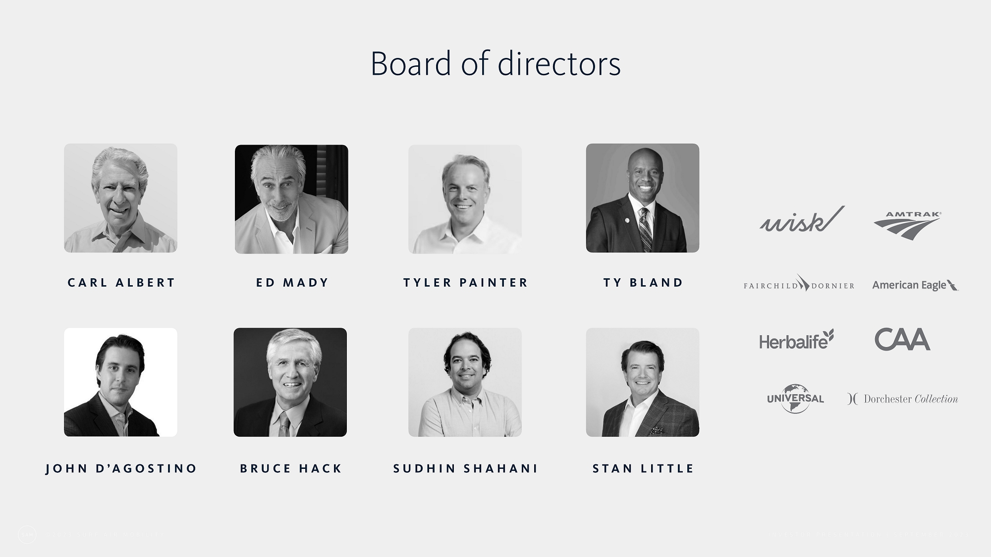 S U R F A I R M O B I L I T Y | © 2 0 2 3 S U R F A I R M O B I L I T Y I N V E S T O R D A Y | J U N E 2 0 2 3 CAR L ALBE R T Board o f di r e c tors E D MA D Y T Y L E R P A I N T E R T Y B L A N D JOH N D ’ A G O STIN O B R UC E H A C K SU D H I N S H A H A N I ST AN LIT TLE © 2 0 2 3 S U R F A I R M O B I L I T Y I N V E S T O R P R E S E N T A T I O N | S E P T E M B E R 2 0 2 3