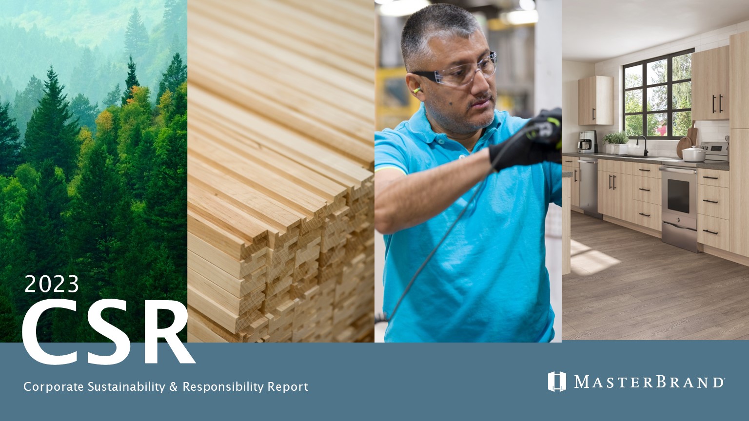 Forward-Looking Statements1  Certain statements contained in this 2023 Corporate Sustainability & Responsibility Report, other than purely historical information, including, but not limited to, statements and information regarding future expectations, outcomes, or results of the Company’s environmental, social, governance, sustainability and corporate responsibility initiatives, projections, predictions, expectations, estimates or forecasts and management’s beliefs, expectations, goals and objectives and other similar expressions concerning matters that are not historical facts, are forward-looking statements. Statements preceded by, followed by or that otherwise include the word “believes,” “expects,” “anticipates,” “intends,” “projects,” “estimates,” “plans,” “may increase,” “may fluctuate,” and similar expressions or future or conditional verbs such as “will,” “should,” “would,” “may,” and “could,” are generally forward-looking in nature and not historical facts. Forward-  looking statements should not be read as a guarantee of future performance, outcomes, or results and will not necessarily  be accurate indications of the times that, or by which, such performance or results will be achieved. Forward-looking statements, including expectations regarding operational and financial improvements and the Company’s future performance, outcomes, or results, are subject to risks and uncertainties that could cause actual performance or results to differ materially from those expressed in such statements. Important factors that could affect the Company’s future performance, outcomes,  or results and could cause them to differ materially from those expressed or implied in the forward-looking statements include the Company’s ability to source sustainable raw materials, avert waste from landfills and manage its energy use, government regulations, changes in the scope of the Company’s operations, developments in science or technologies on measuring or assessing the impacts of operations or emissions, consumer preferences for goods or services relating to sustainability, emissions reductions and greenhouse gas emissions, as well as the risk factors discussed in Part I, Item 1A of the Company’s Annual Report on Form 10-K for the fiscal year ended December 31, 2023 and in subsequent filings with the Securities and Exchange Commission. Forward-looking statements speak only as of the date of this report and, except pursuant to any obligations to disclose material information under the federal securities laws, the Company undertakes no obligation to update, amend or clarify any forward-looking statements to reflect events, new information or circumstances occurring after the date of this report. The Company assumes no obligation  to update forward-looking statements to reflect actual results, changes in assumptions, or changes in other factors affecting such statements. If the Company does update one or more forward-looking statements, no inference should be drawn that the Company will make additional updates with respect thereto or concerning other forward-looking statements.  This report uses certain terms, including those that leading ESG frameworks such as SASB, MSCI and Refinitiv refer to as material topics, to reflect the issues of greatest importance to our stakeholders. Used in this context, these terms are distinct from, and should not be confused with, the terms “material”  and “materiality” as defined by or construed in accordance with securities laws or as used in the context of financial statements and reporting.  Materiality  1 All data and statements included in this report represent MasterBrand prior to its acquisition of Supreme Cabinetry Brands. Supreme Cabinetry Brands is excluded from all data and statements presented.  CEO MESSAGE  MasterBrand | 2023 CSR Report  20  ABOUT MASTERBRAND  PEOPLE  APPENDICES  GOVERNANCE  ENVIRONMENTAL RESPONSIBILITY & SUSTAINABILITY