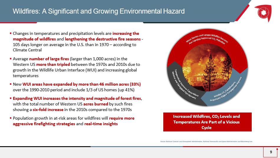 Directly attack the hundreds of millions of metric tons of CO 2 emi tted annually to combat climate change Minimize environmental harm through eco - friendly and sustainable firefighting methods Mitigate hundreds of billions e conomic loss annually as wildfire severity, frequency and damage rises To Address the Increasing Threat of Economic and Environmental Damage Caused by Wildfires and to Provide Support for Ground - based Firefighters Bridger’s Commitment to the Environment 8 Source: AccuWeather, Bankrate, ABC10 and CalMatters.