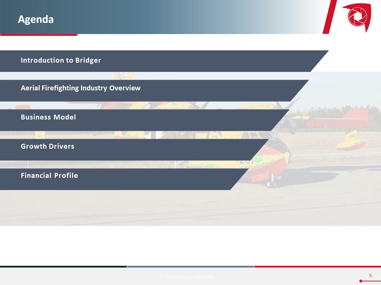 Agenda Private and Confidential 5 Introduction to Bridger Aerial Firefighting Industry Overview Business Model Growth Drivers Financial Profile 5