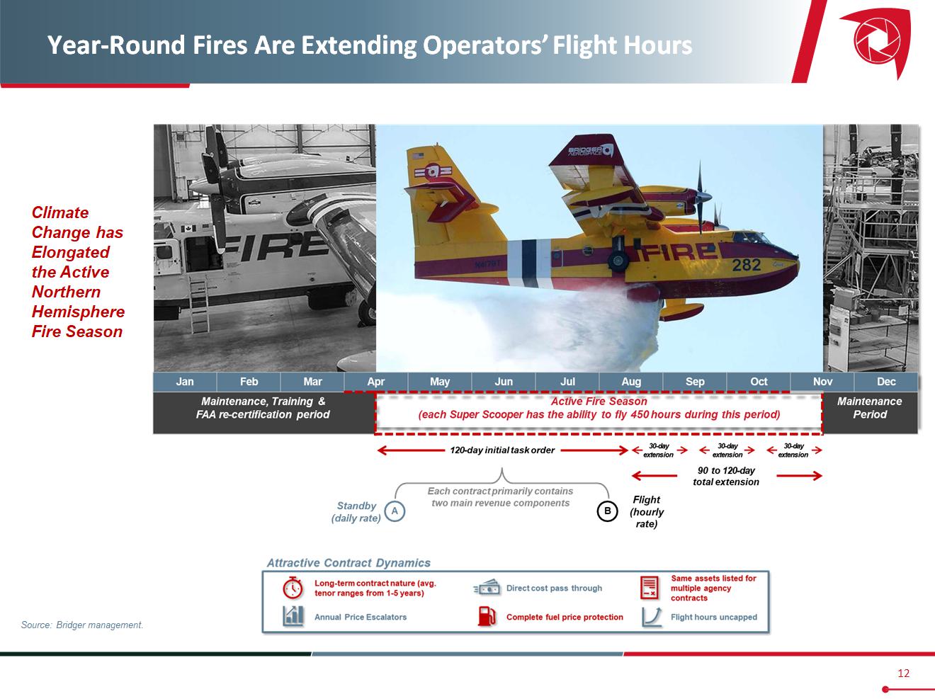 Source: Bridger management. Year - Round Fires Are Extending Operators’ Flight Hours Climate Change has Elongated the Active Northern Hemisphere Fire Season 12