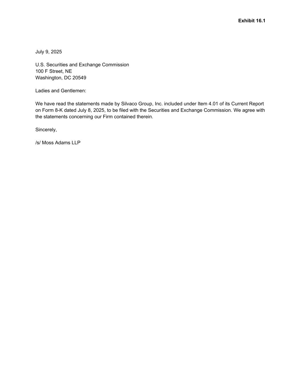 Exhibit 16.1 July 9, 2025 U.S. Securities and Exchange Commission 100 F Street, NE Washington, DC 20549 Ladies and Gentlemen: We have read the statements made by Silvaco Group, Inc. included under Item 4.01 of its Current Report on Form 8-K dated July 8, 2025, to be filed with the Securities and Exchange Commission. We agree with the statements concerning our Firm contained therein. Sincerely, /s/ Moss Adams LLP