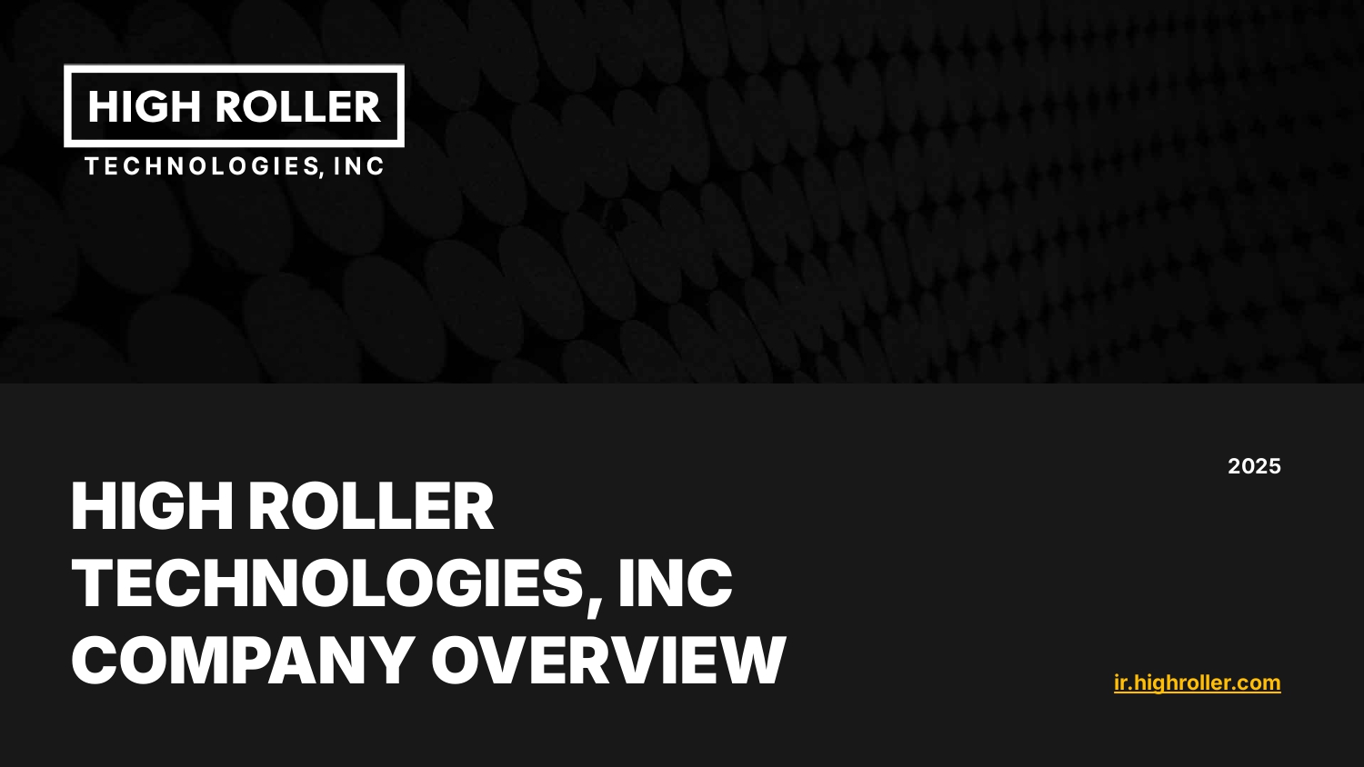 HIGH ROLLER TECHNOLOGIES, INC COMPANY OVERVIEW 2025 ir.highroller.com