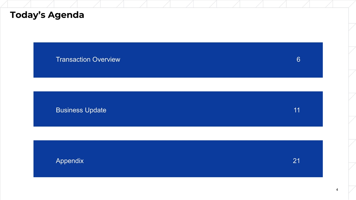Today’s Agenda Transaction Overview 6 Business Update 11 Appendix 21 4