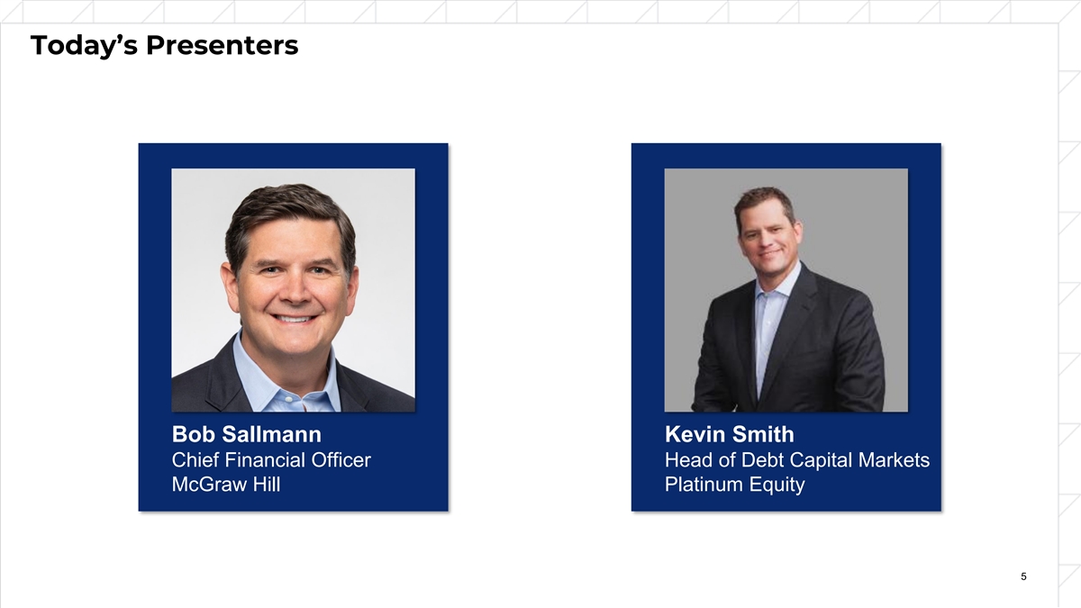 Today’s Presenters Bob Sallmann Kevin Smith Chief Financial Officer Head of Debt Capital Markets McGraw Hill Platinum Equity 5