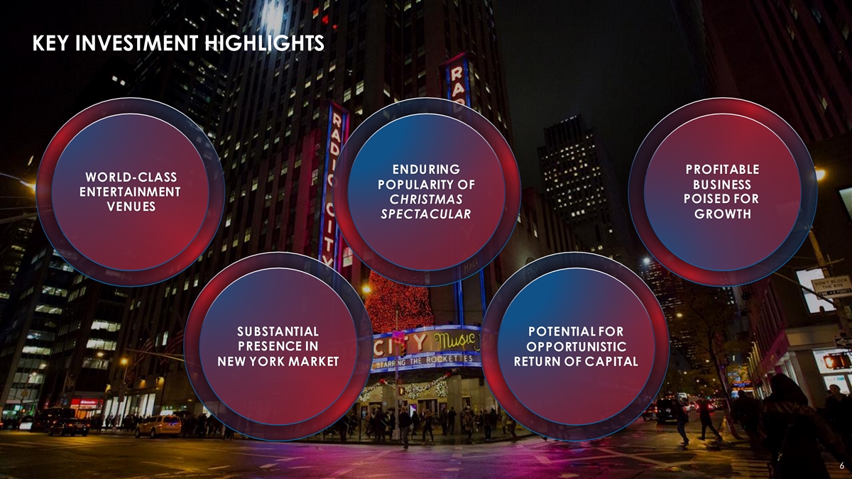 KEY INVESTMENT HIGHLIGHTS ENDURING PROFITABLE WORLD-CLASS POPULARITY OF BUSINESS ENTERTAINMENT POISED FOR CHRISTMAS VENUES SPECTACULAR GROWTH SUBSTANTIAL POTENTIAL FOR PRESENCE IN OPPORTUNISTIC NEW YORK MARKET RETURN OF CAPITAL 6