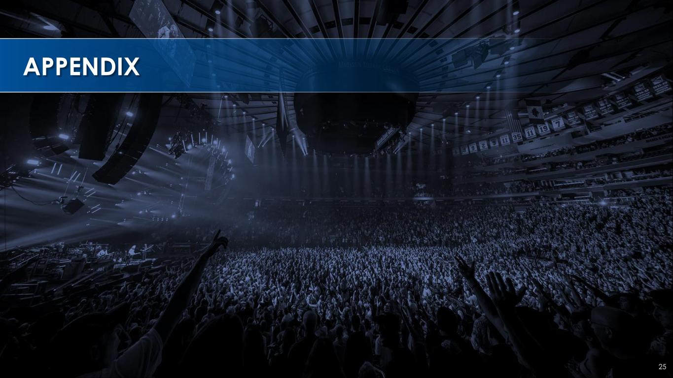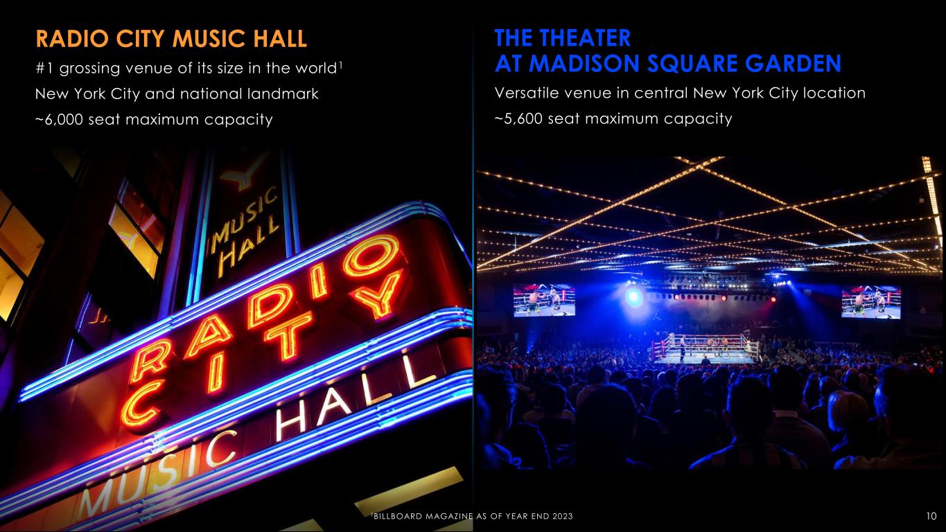MADISON SQUARE GARDEN “The World’s Most Famous Arena” #1 grossing venue of its size in the world1 ~21,000 seat maximum capacity 91BI LLBOARD MAGAZINE AS OF YEAR END 2023