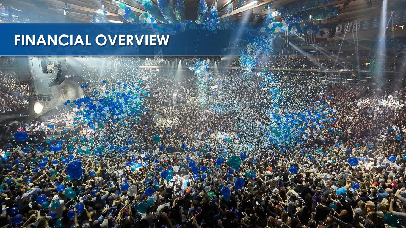 STRONG MARKETING PARTNERSHIP TRACK RECORD S P O N S O R S H I P R E L A T I O N S H I P S D E L I V E R C O M P E L L I N G V A L U E INNOVATIVE MARKETING PARTNERSHIP OFFERINGS • Sought-after entertainment brands • Significant exposure in NYC • Cross-selling opportunities with MSG Sports VALUABLE MULTI-YEAR PARTNERSHIPS • Signature and Marquee partners represent majority of sponsorship revenue ATTRACTIVE GROWTH OPPORTUNITIES • Utilizing integrated approach to renew existing partners • Targeting emerging and underpenetrated verticals • New relationship formed with Oak View Group and Crown Properties Collection in September 2023 19