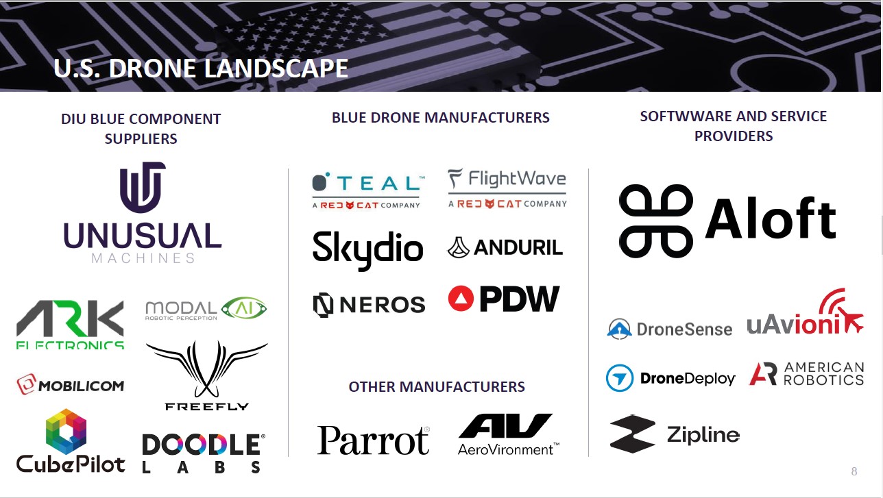 8 DIU BLUE COMPONENT SUPPLIERS BLUE DRONE MANUFACTURERS SOFTWWARE AND SERVICE PROVIDERS U.S. DRONE LANDSCAPE OTHER MANUFACTURERS