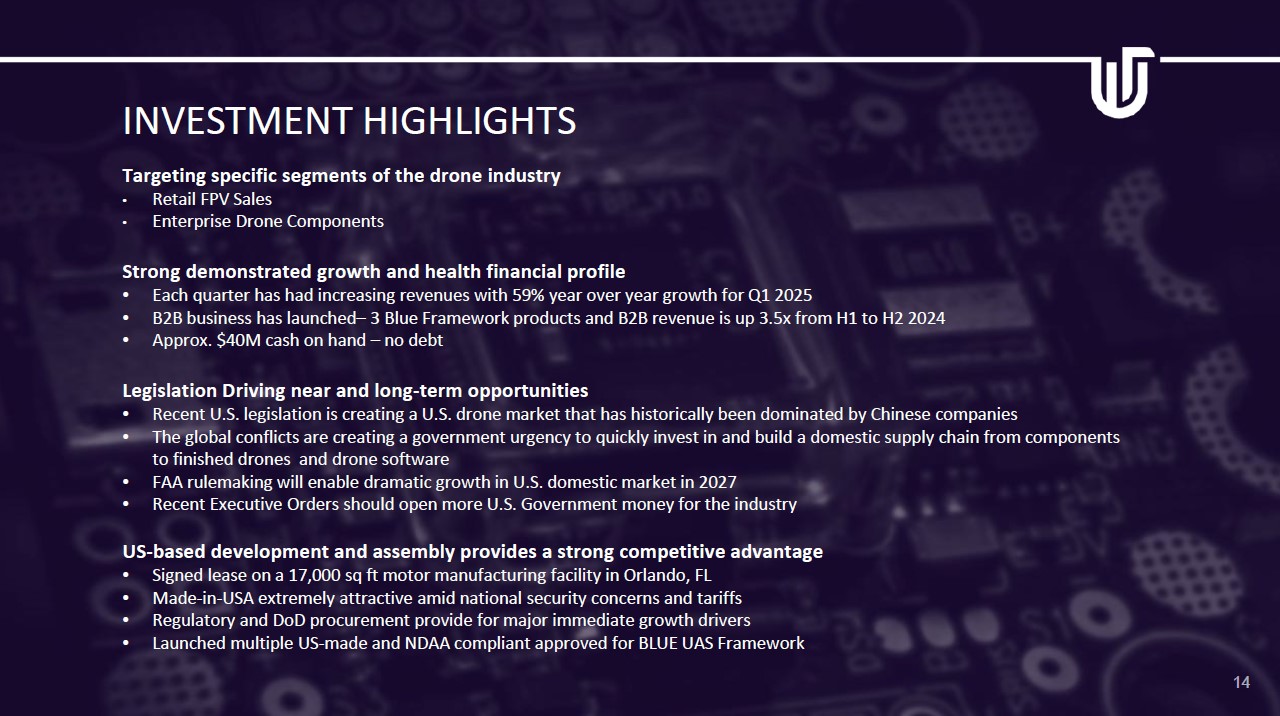 Parts and Platforms: Building the American Drone Industry NYSE American: UMAC Investor Presentation June 2025