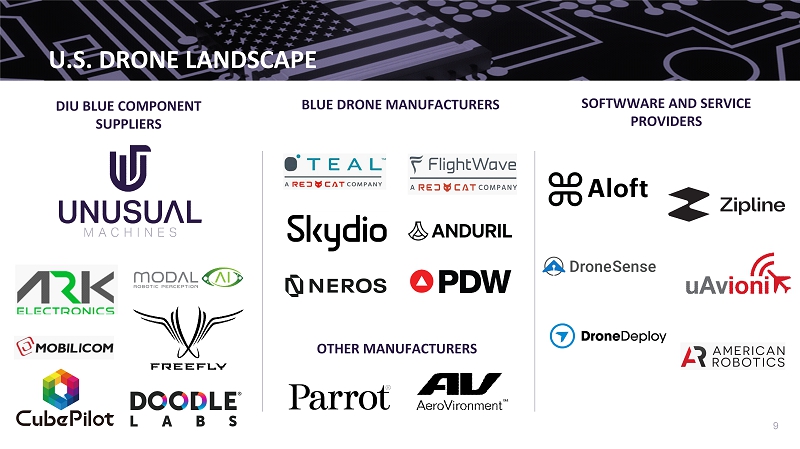 9 DIU BLUE COMPONENT SUPPLIERS BLUE DRONE MANUFACTURERS SOFTWWARE AND SERVICE PROVIDERS U.S. DRONE LANDSCAPE OTHER MANUFACTURERS