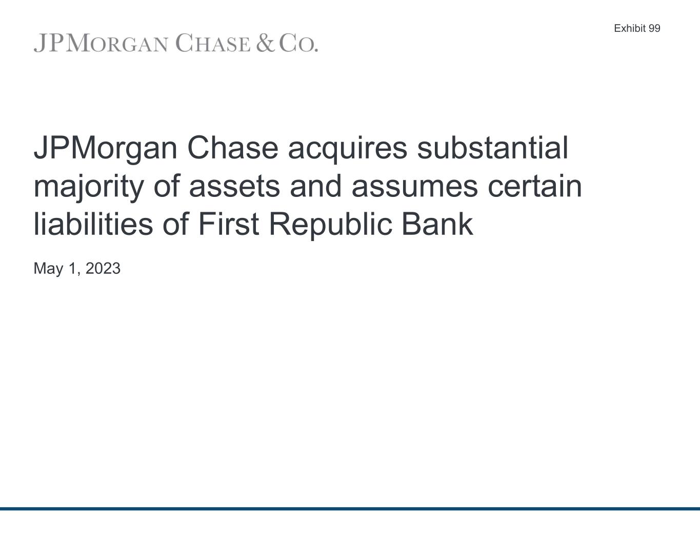 JPMorgan Chase acquires substantial majority of assets and assumes certain liabilities of First Republic Bank May 1, 2023 Exhibit 99