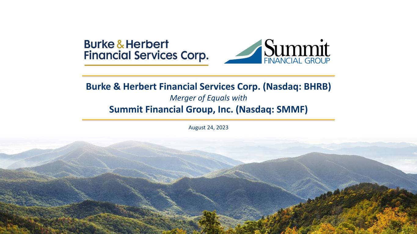 Burke & Herbert Financial Services Corp. (Nasdaq: BHRB) Merger of Equals with Summit Financial Group, Inc. (Nasdaq: SMMF) August 24, 2023