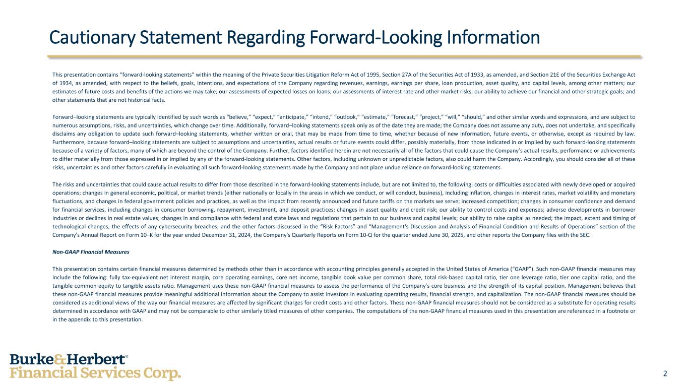 1 October 2025 3Q25 Update (Nasdaq: BHRB)