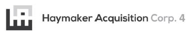 Haymaker Acquisition Corp. 4 is a blank check company formed for the purpose of effecting a business combination, capital stock exchange, asset acquisition, stock purchase, reorganization or similar business combination with one or more businesses. Haymaker is led by Vice President Andrew Heyer and Chief Executive Officer and Chief Financial Officer Christopher Bradley.