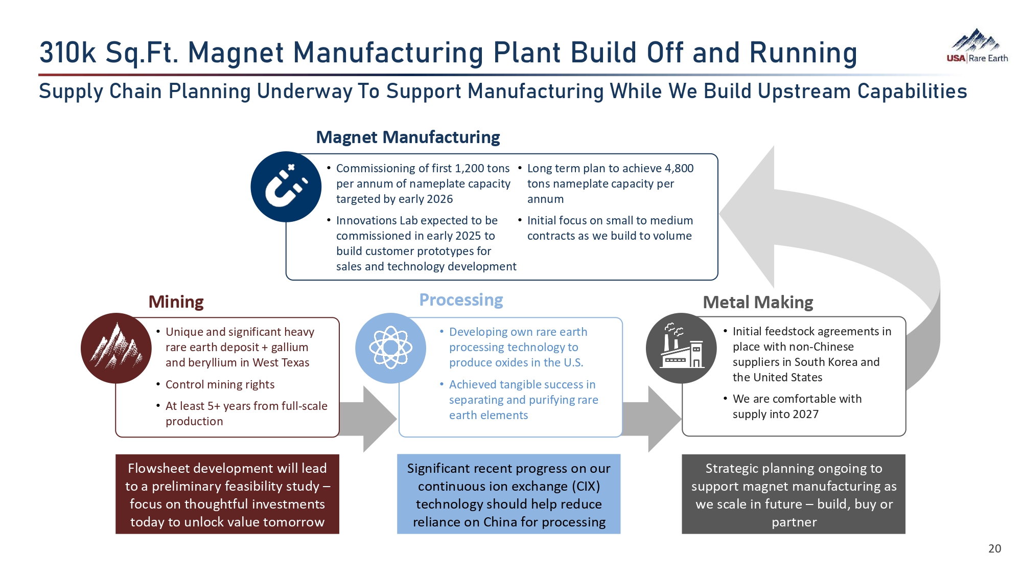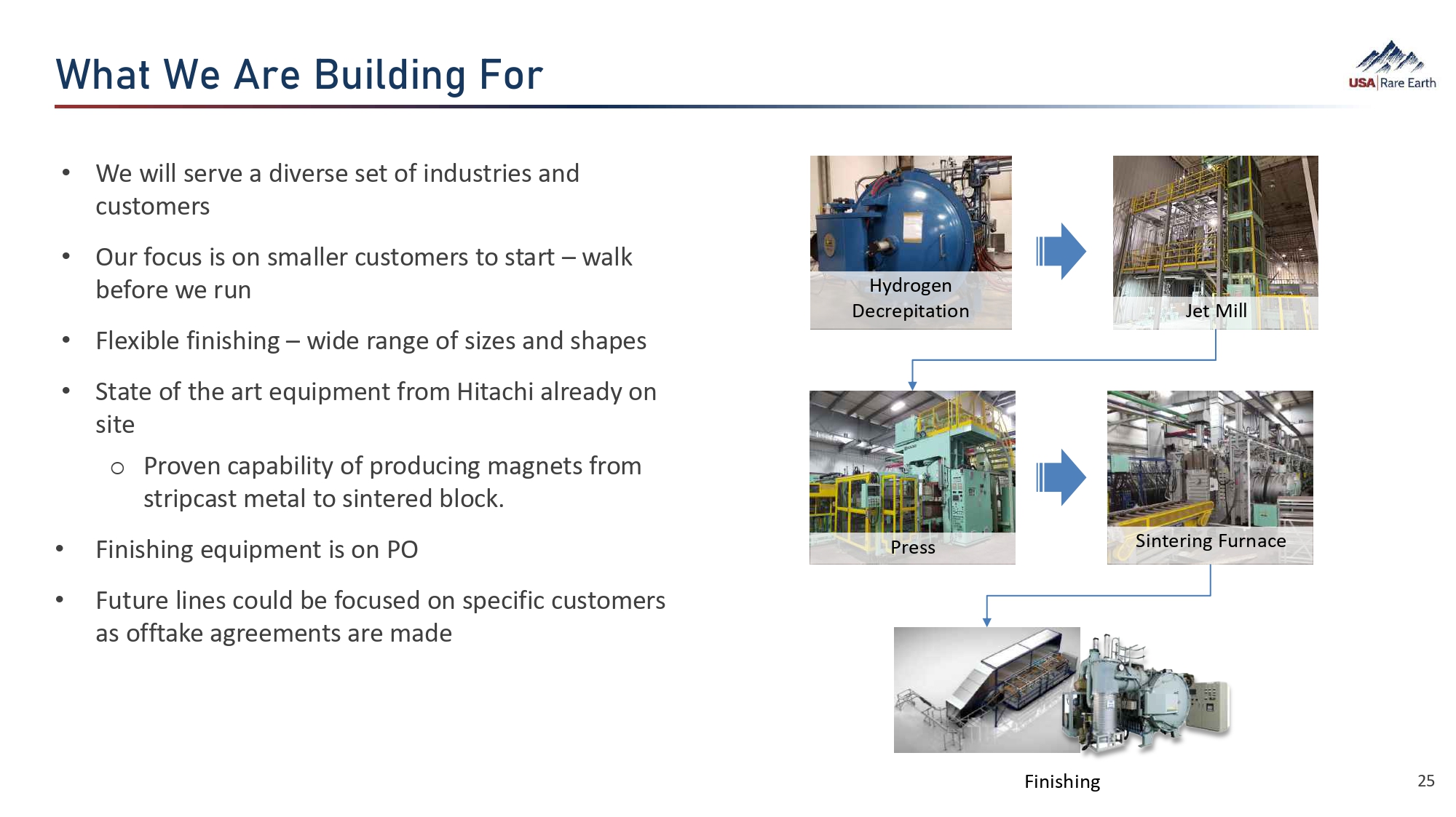 We are rapidly moving to build one of the more flexible and largest rare earth magnet manufacturing facilities in the United States
