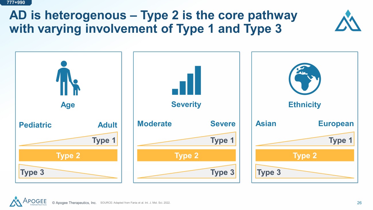 26 © Apogee Therapeutics, Inc. AD is heterogenous – Type 2 is the core pathway with varying involvement of Type 1 and Type 3 Severity Age Ethnicity Moderate Severe Type 2 Type 3 Type 1 Pediatric Adult Type 2 Type 3 Type 1 Asian European Type 2 Type 3 Type 1 SOURCE: Adapted from Fania et al. Int. J. Mol. Sci. 2022. 777+990