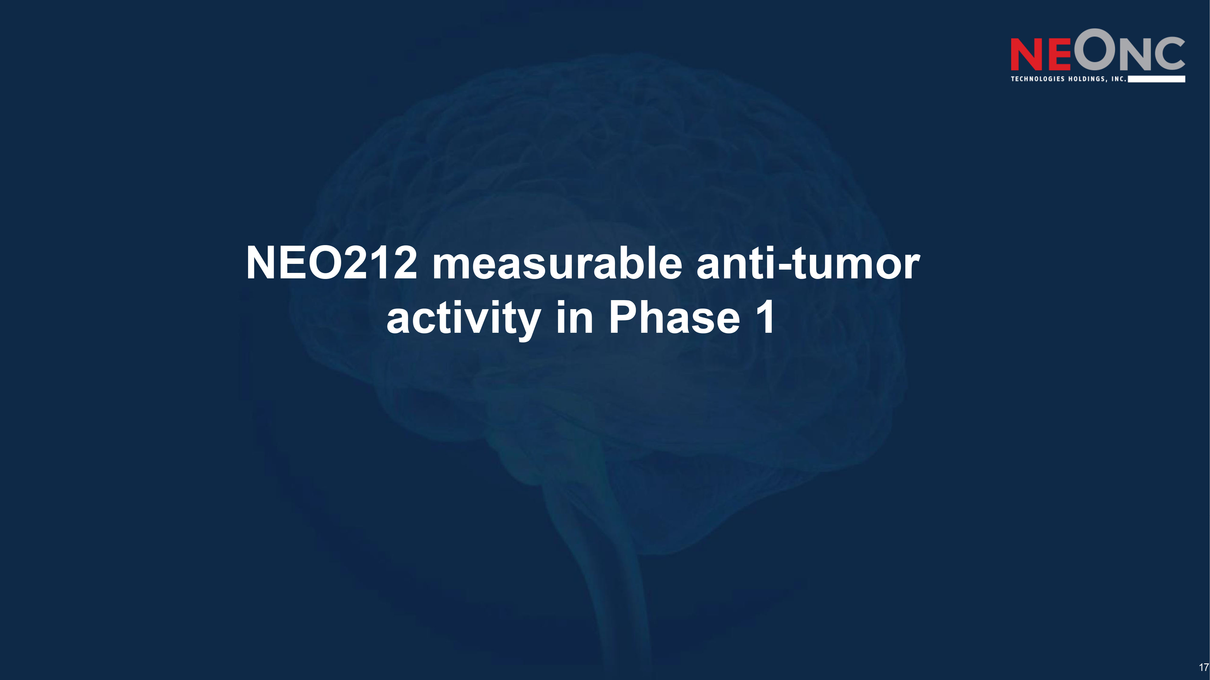 17 NEO212 measurable anti - tumor activity in Phase 1