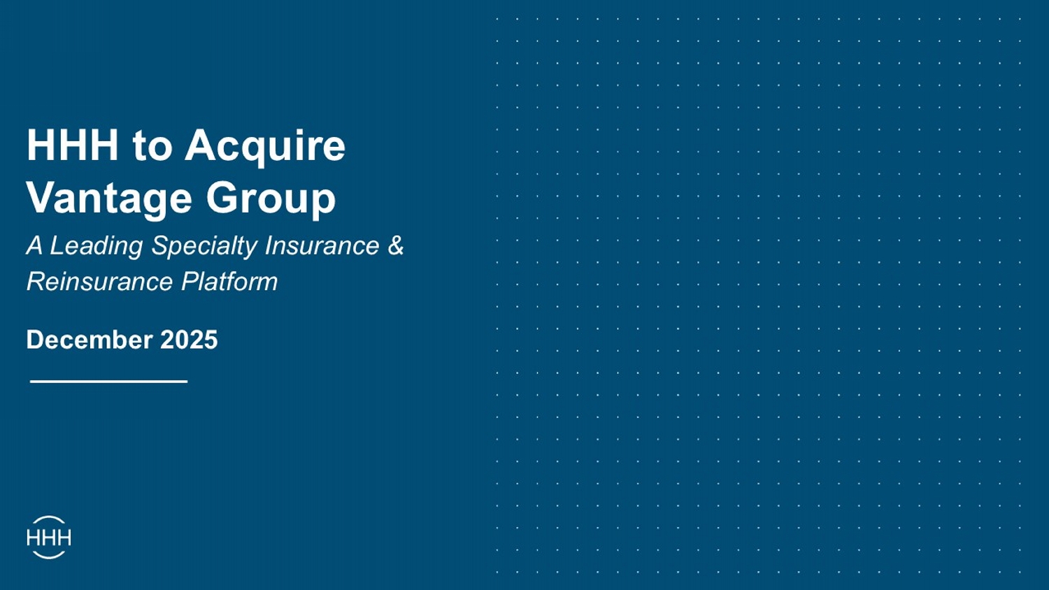 HHH to Acquire Vantage Group A Leading Specialty Insurance & Reinsurance Platform December 2025