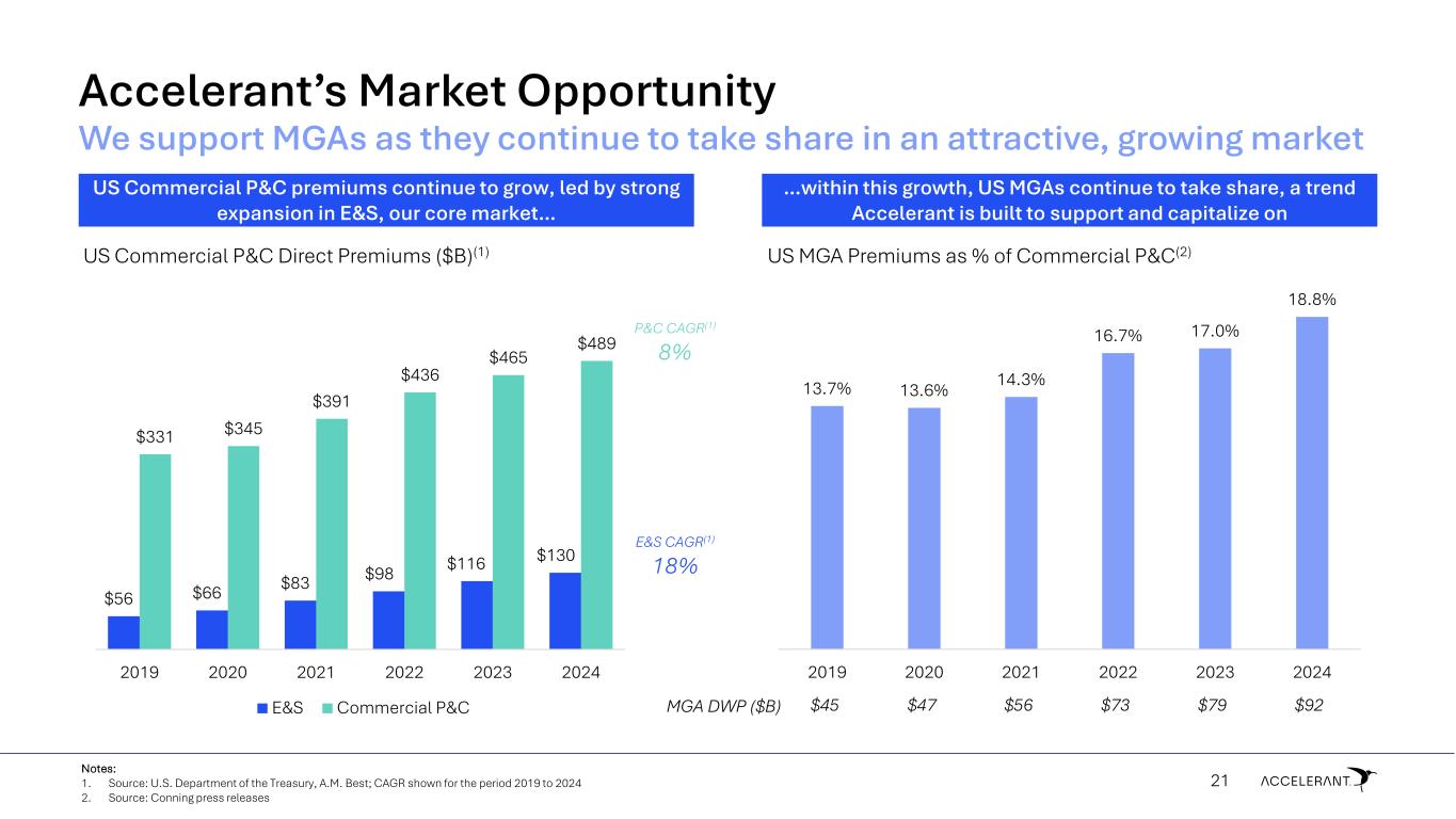 Who We Are Two-sided platform connecting specialty underwriters with long-term risk capital 265 Members 92 Risk Capital Partners $252B Serviceable Addressable Market +42% LTM 3Q’25 Exchange Written Premium Growth (All Organic) $4.0B LTM 3Q’25 Exchange Written Premium Founded in 2018, our two-sided platform continues to scale rapidly, organically… • For our Members (typically MGAs, MGUs, or program administrators), we endeavor to be the best partner in the world. We provide (a) the long-term insurance capacity they need to issue policies, (b) a modern data & analytics platform to drive superior underwriting, and (c) discounts or optimizations on shared Member services • For our risk capital partners (insurers, reinsurers, and institutional investors), we deliver a diversified portfolio of low-limit, low- volatility specialty risk that they may struggle to access and/or appropriately manage on their own 20