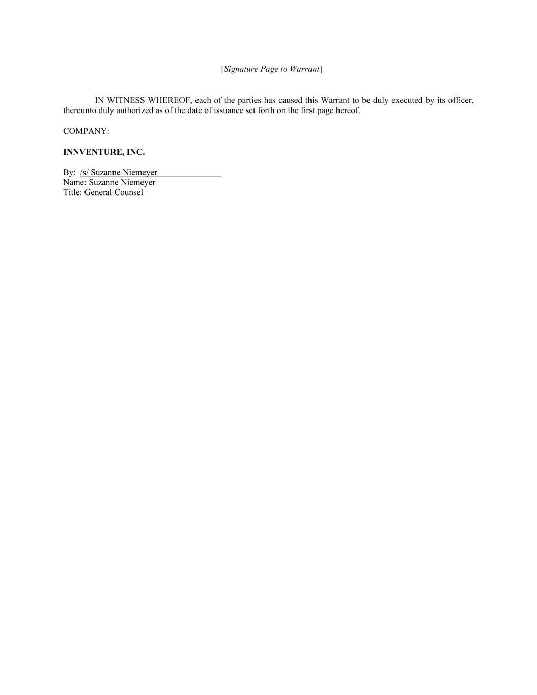 [Signature Page to Warrant] IN WITNESS WHEREOF, each of the parties has caused this Warrant to be duly executed by its officer, thereunto duly authorized as of the date of issuance set forth on the first page hereof. COMPANY: INNVENTURE, INC. By: /s/ Suzanne Niemeyer Name: Suzanne Niemeyer Title: General Counsel